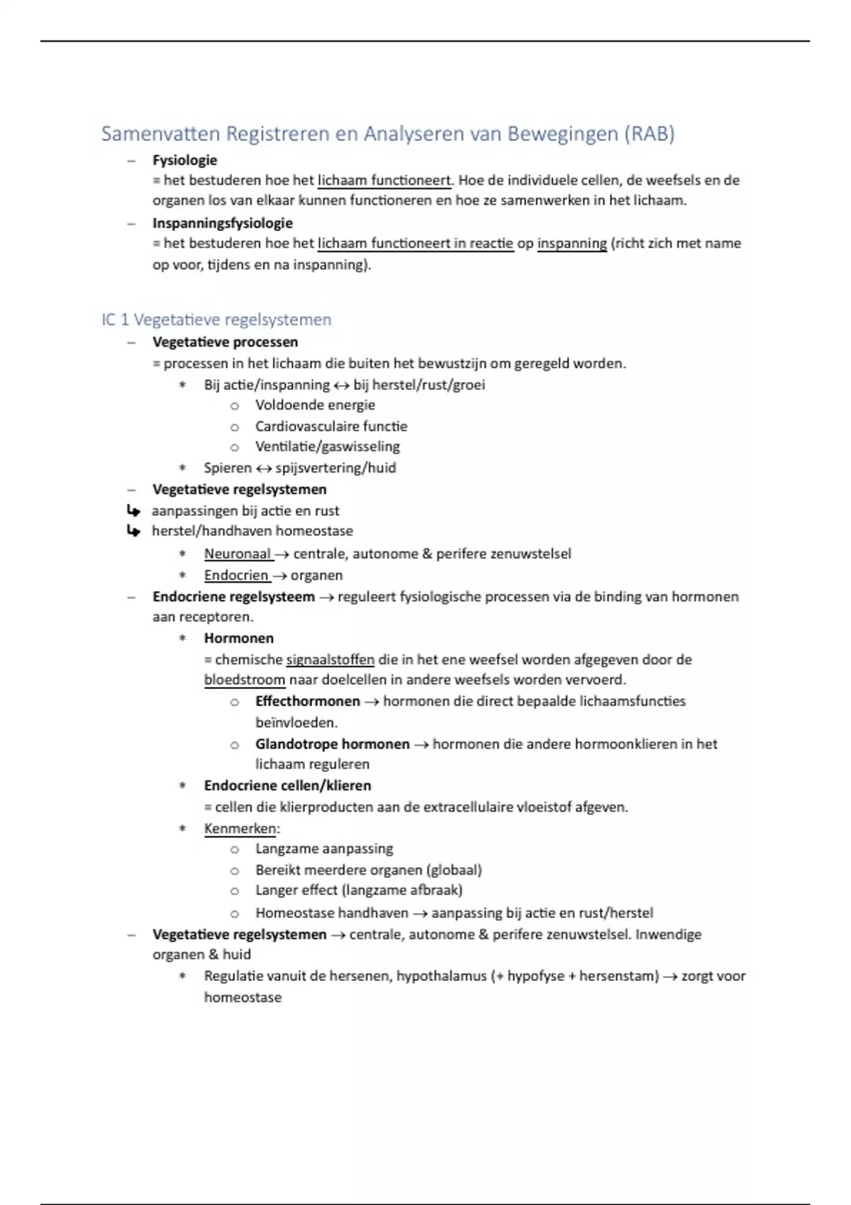 o Homeostase handhaven → aanpassing bij actie en rust/herstel