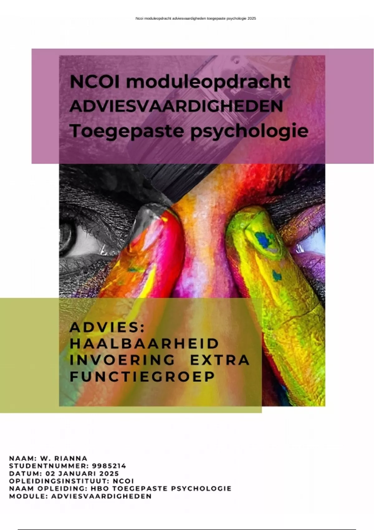 , Ncoi moduleopdracht adviesvaardigheden toegepaste psychologie 2025