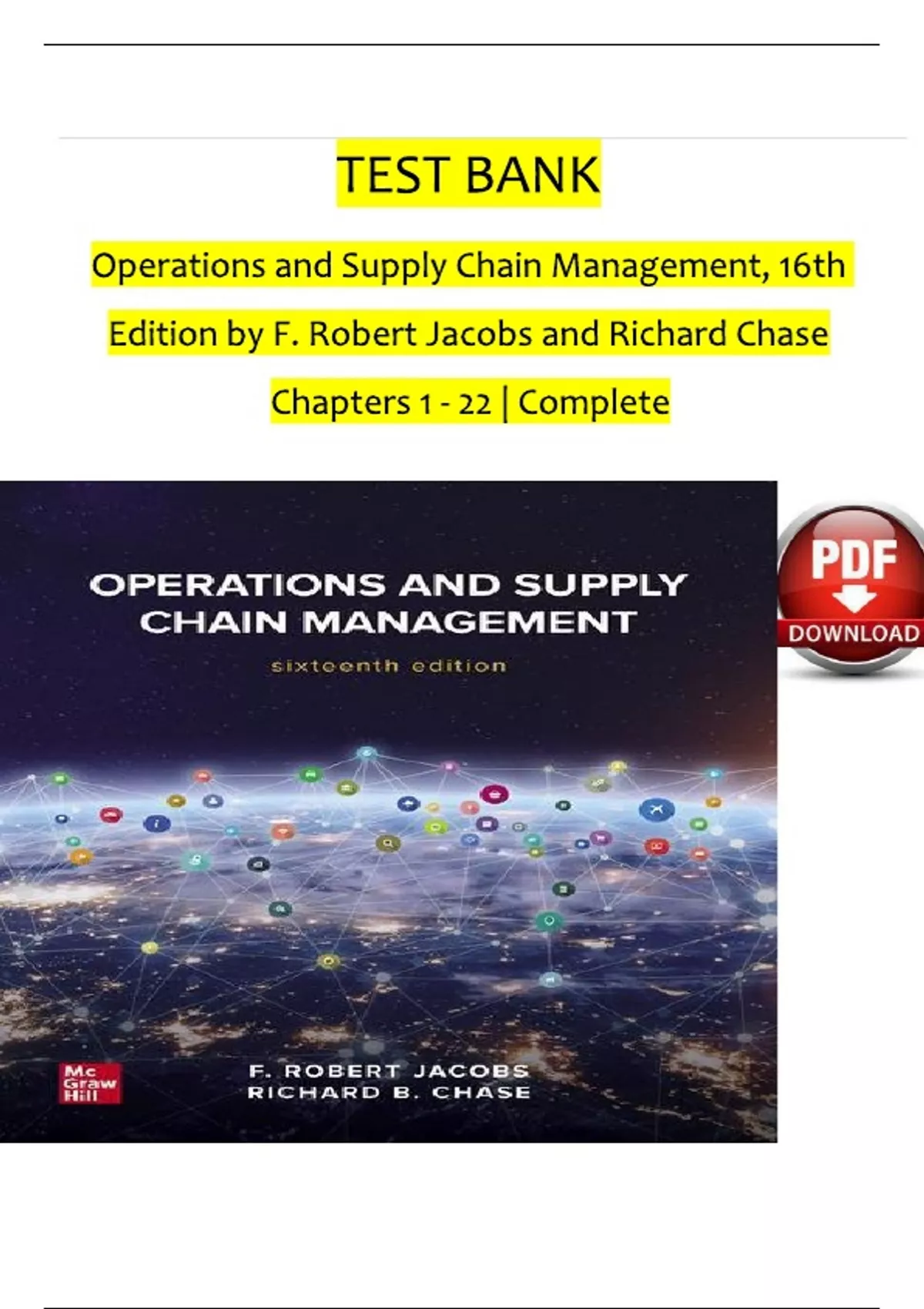 TEST BANK - Jacobs and Chase, Operations and Supply Chain Management 16th Edition, Chapters 1 - 22, Complete Newest Version