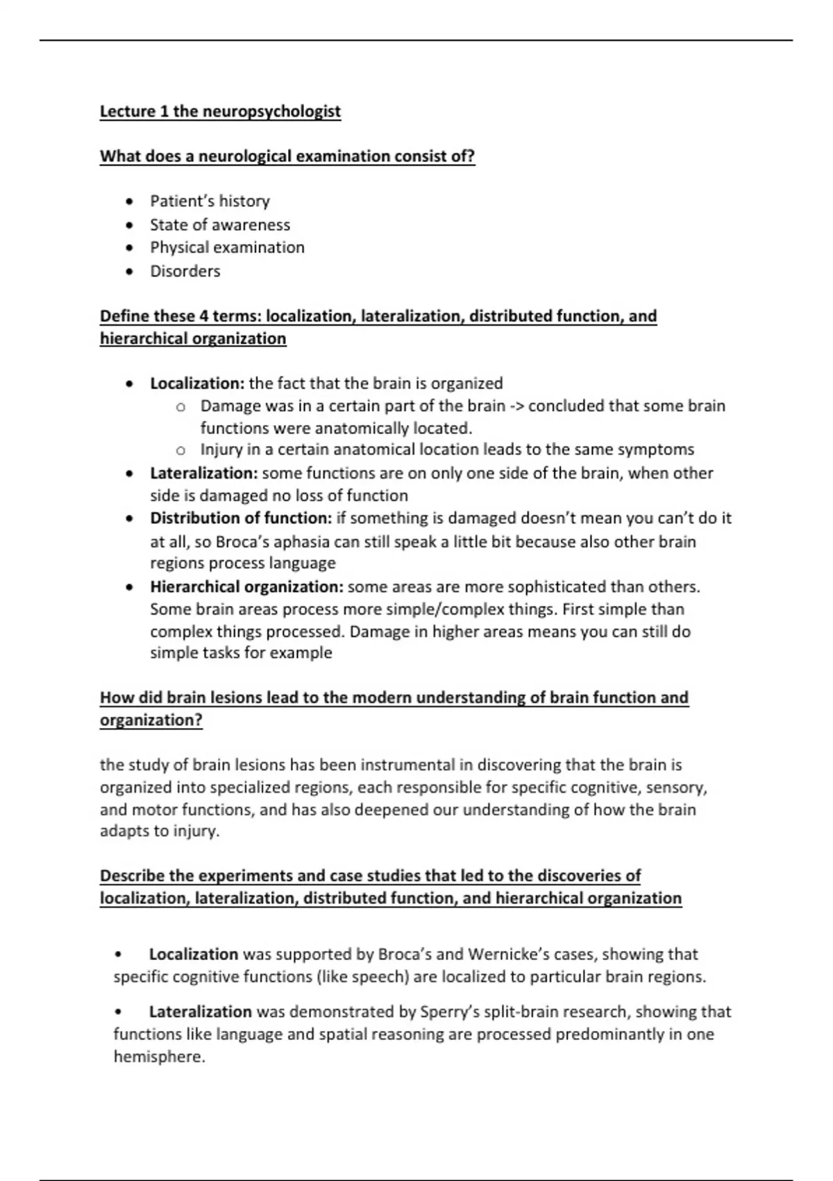 This document contains MOST of the answers of the key points of chapter 1,3,4,5,6,7,8. NOTE: lecture 2 is missing. This course is part of the minor Psychology and the Brain at Vrije Universiteit Amsterdam.