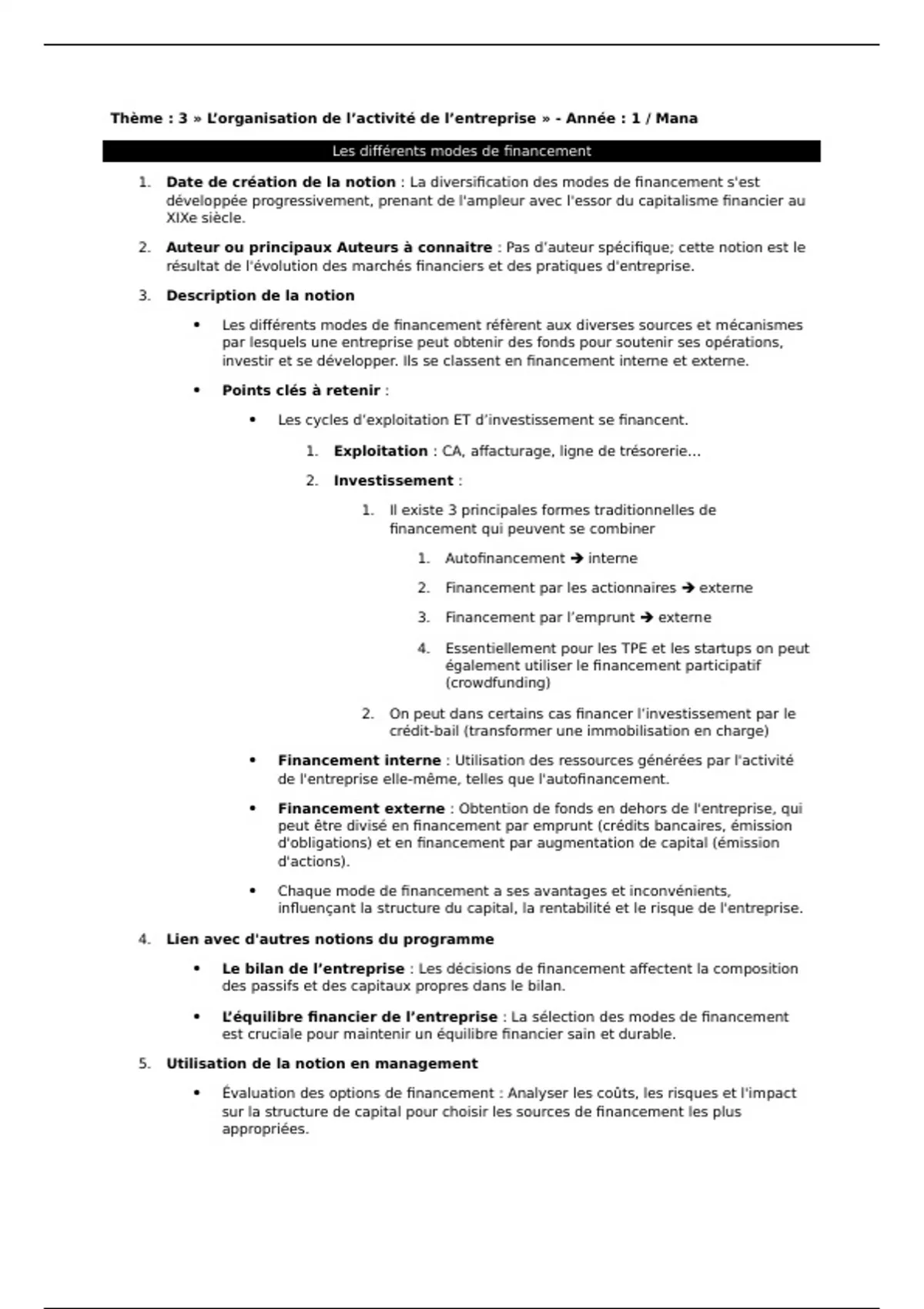 Thème : 3 » L’organisation de l’activité de l’entreprise » - Année : 1 / Mana