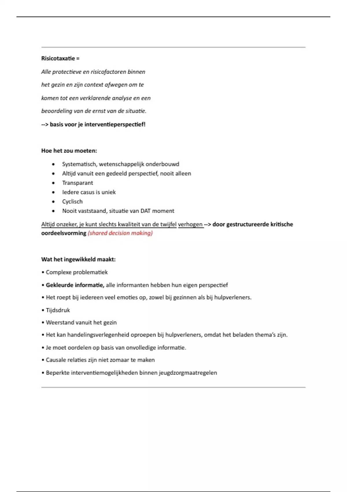 Al jd onzeker, je kunt slechts kwaliteit van de twijfel verhogen --> door gestructureerde kri sche