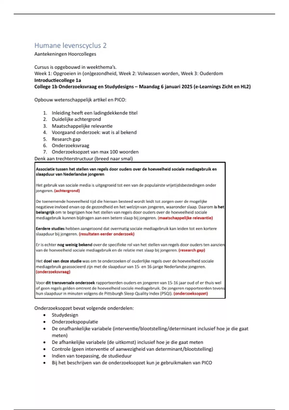 College 1b Onderzoeksvraag en Studydesigns – Maandag 6 januari 2025 (e-Learnings Zicht en HL2)