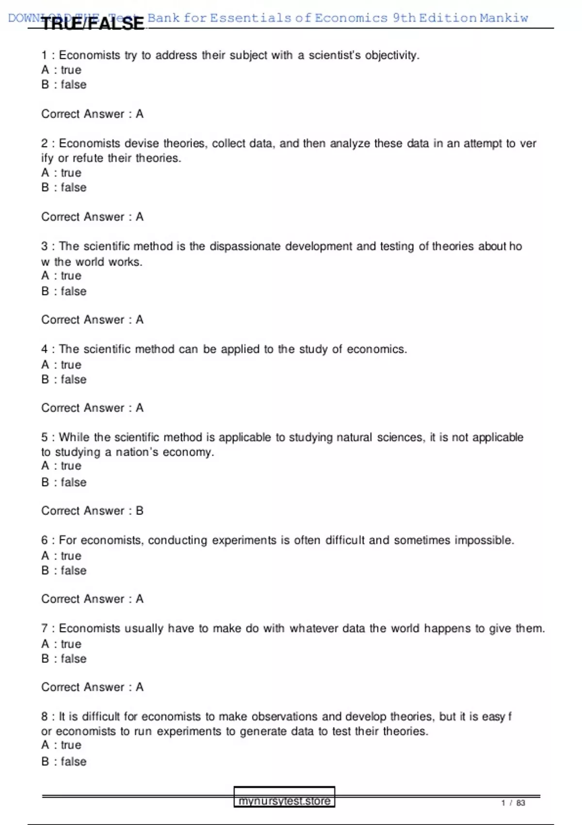 DOWNLOAD TH E Test Bank for Essentials of Economics 9th Edition Mankiw