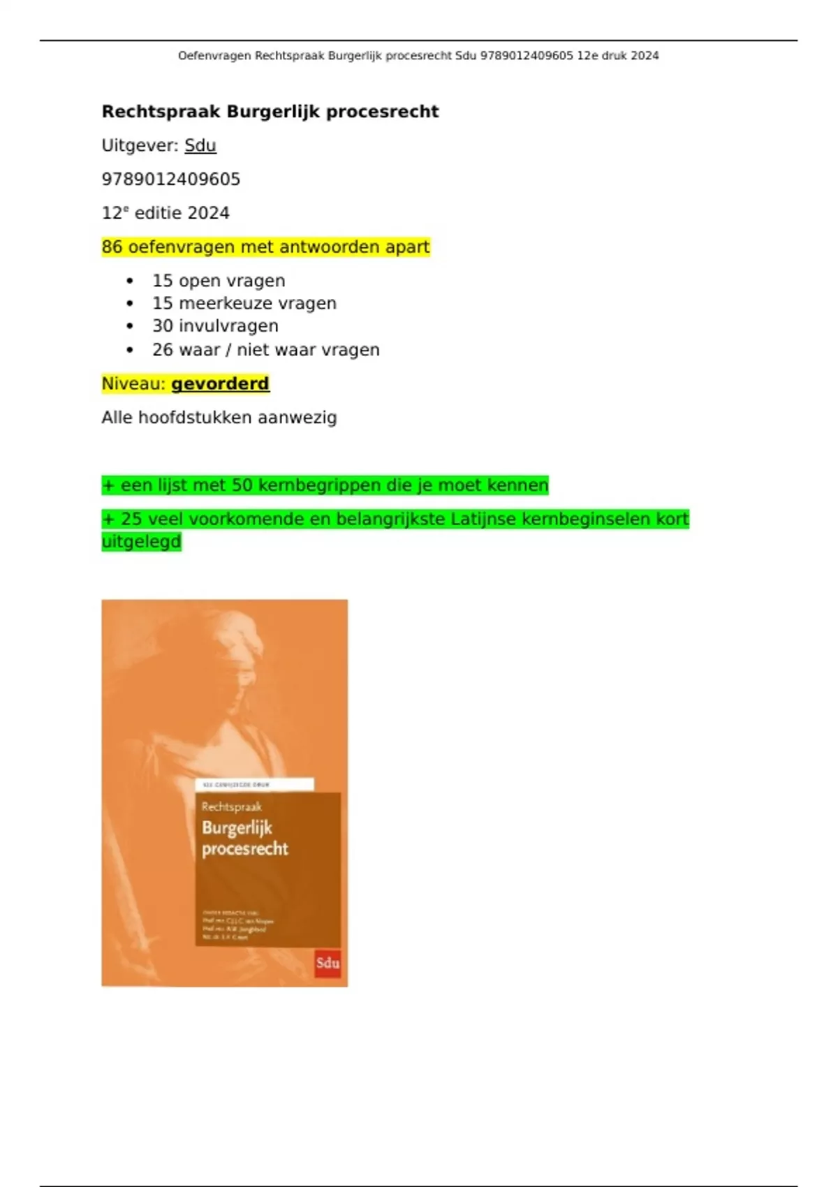 , Oefenvragen Rechtspraak Burgerlijk procesrecht Sdu 9789012409605 12e druk 2024