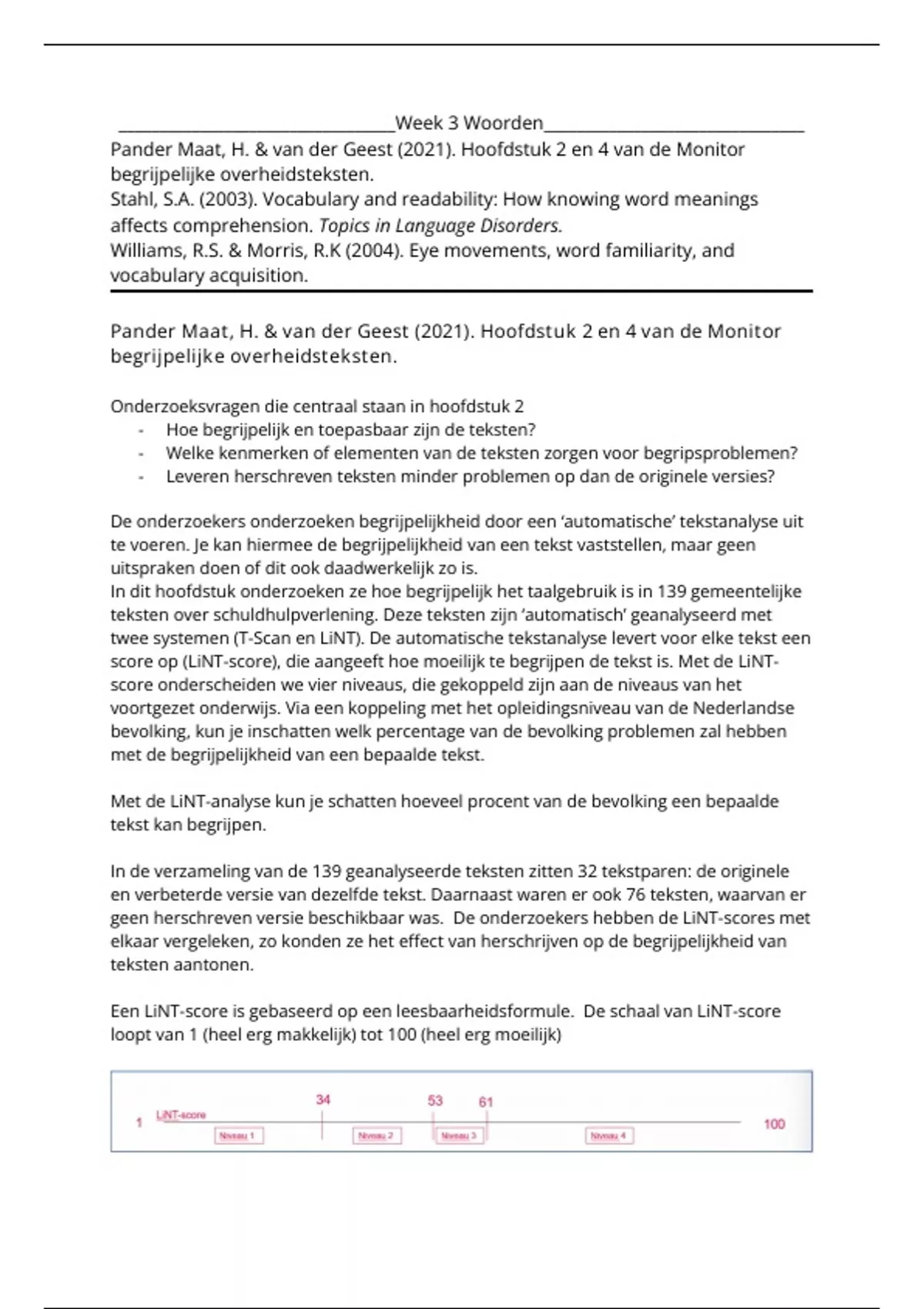 score op (LiNT-score), die aangeeft hoe moeilijk te begrijpen de tekst is. Met de LiNT-