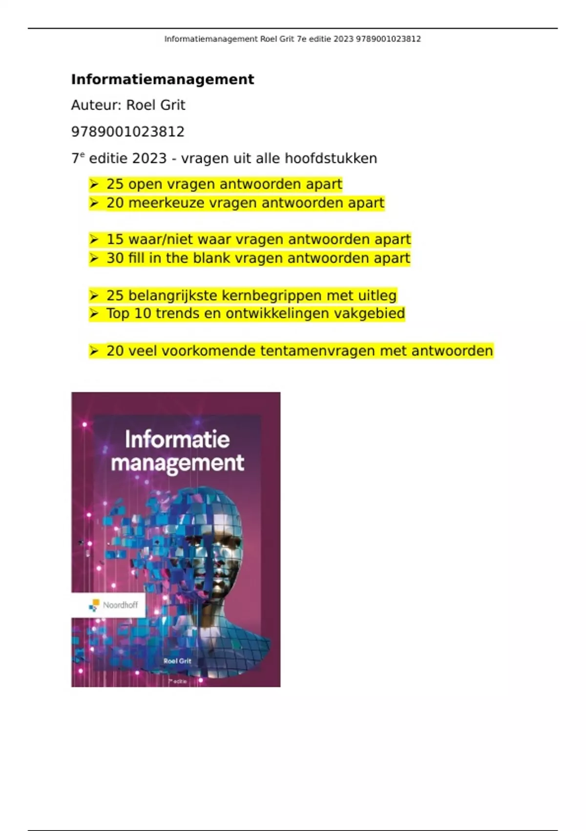 , Informatiemanagement Roel Grit 7e editie 2023 9789001023812