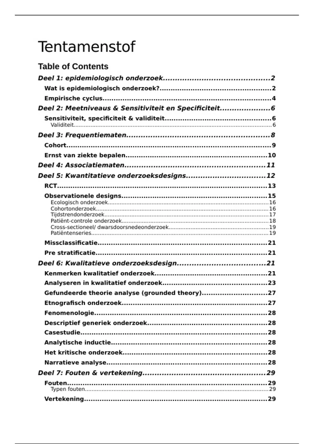 Een samenvatting over de tentamenstof GZW1023 Introductie wetenschappelijke onderzoeksmethoden. Het gaat onder anderen over epidemiologisch onderzoek, de empirische cyclus, meetniveaus, sensitiviteit, specificiteit Validiteit, Frequentiematen, associatiematen Kwantitatieve onderzoeksdesigns zoals: RCT, observationele designs, ecologisch onderzoek, cohortonderzoek , tijdstrendonderzoek, patiënt-controle onderzoek, cross-sectioneel/ dwarsdoorsnedeonderzoek, patiëntenseries, walitatieve onderzoeksdesign, kenmerken kwalitatief onderzoek, analyseren in kwalitatief onderzoek, gefundeerde theorie analyse (grounded theory), fenomenologie, fouten & vertekening,