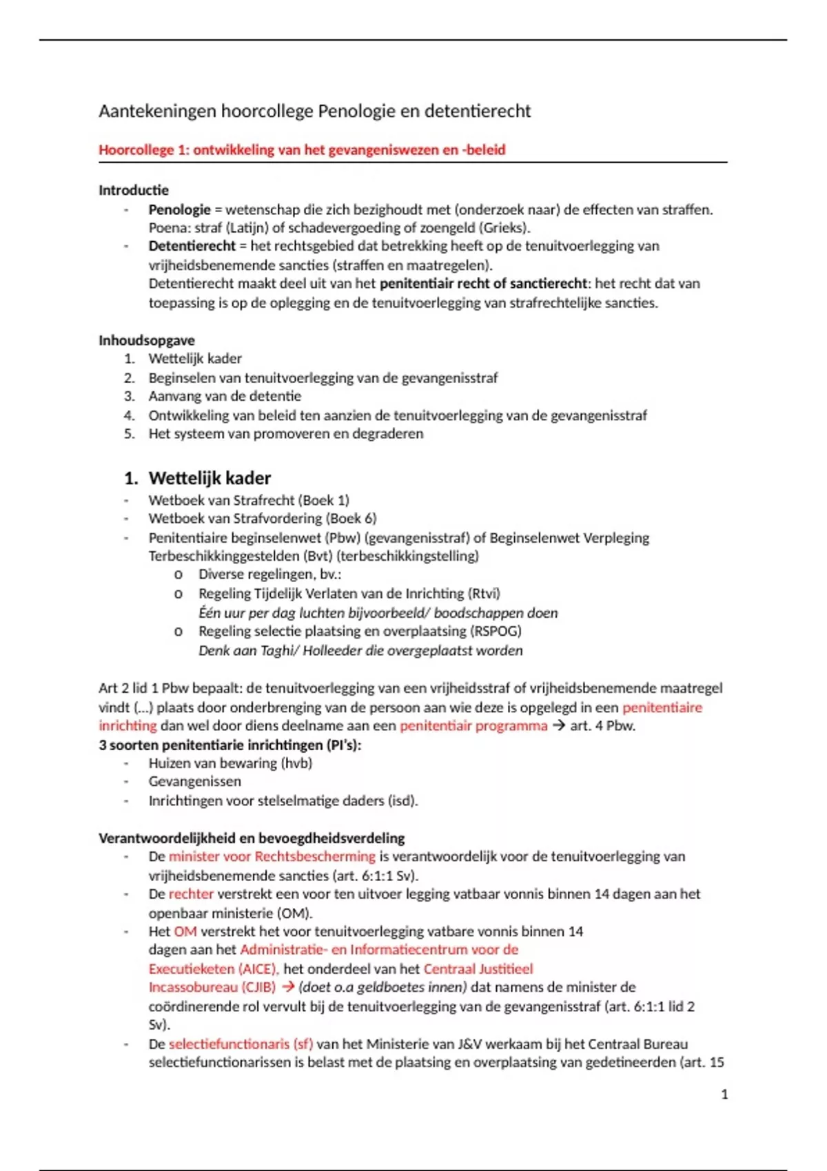 Aantekeningen hoorcollege Penologie en detentierecht