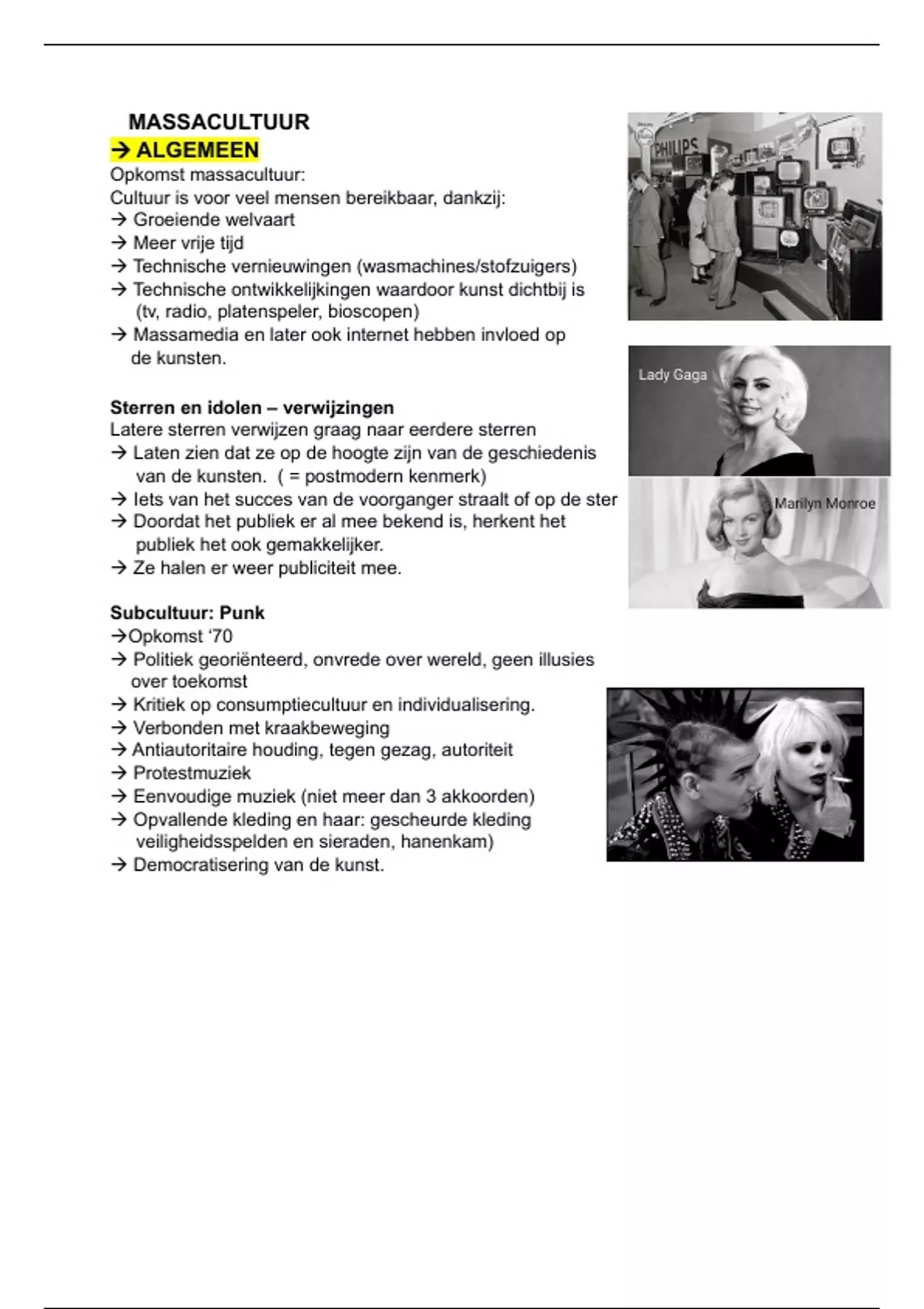 Samenvatting Kunst Algemeen: Massacultuur (voor havo & vwo)