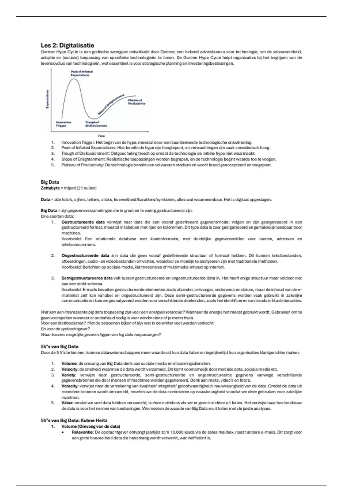 Big Data = zijn gegevensverzamelingen die te groot en te weinig gestructureerd zijn.