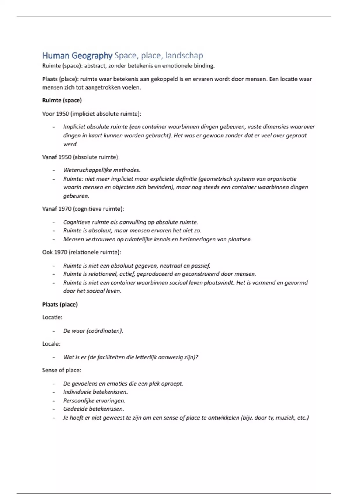 Plaats (place): ruimte waar betekenis aan gekoppeld is en ervaren wordt door mensen. Een locatie waar