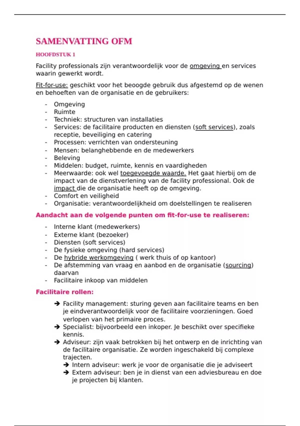 Samenvatting H1 tm H8 Basisboek Facility Management