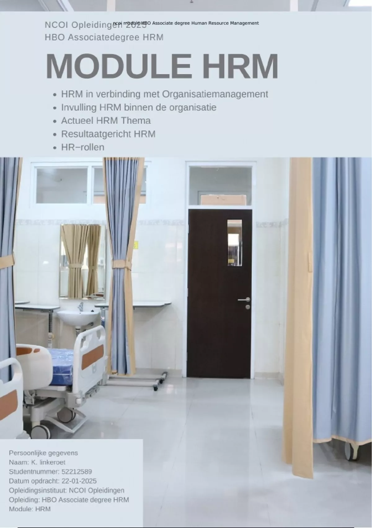 NCOI module HRM voorbeeld - geslaagd 2025 cijfer 9 - HRM en organisatiemanagement, invulling HRM, actueel HRM thema enz. - compeet met oefentoets