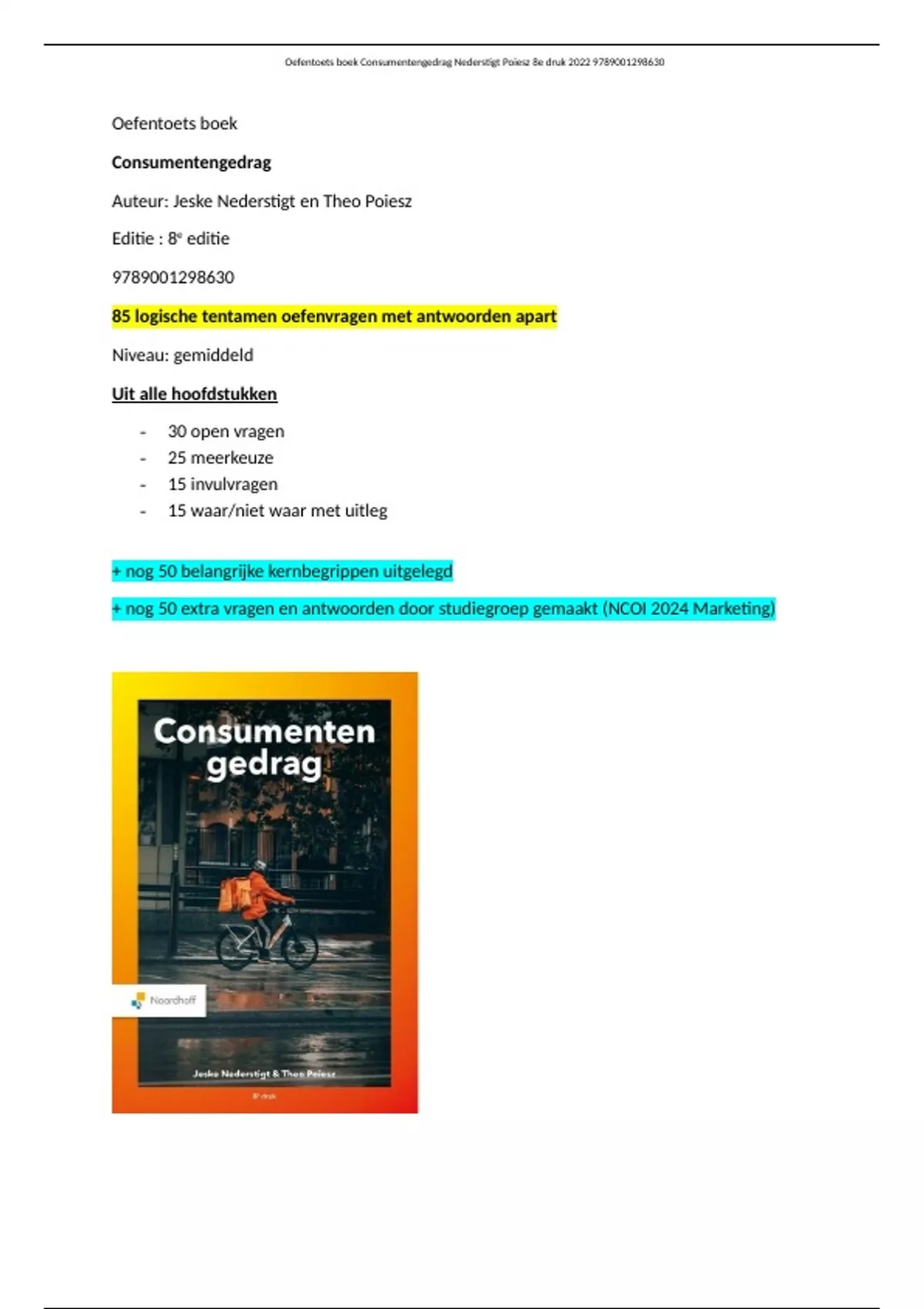 ,Oefentoets boek Consumentengedrag Nederstigt Poiesz 8e druk 2022 9789001298630