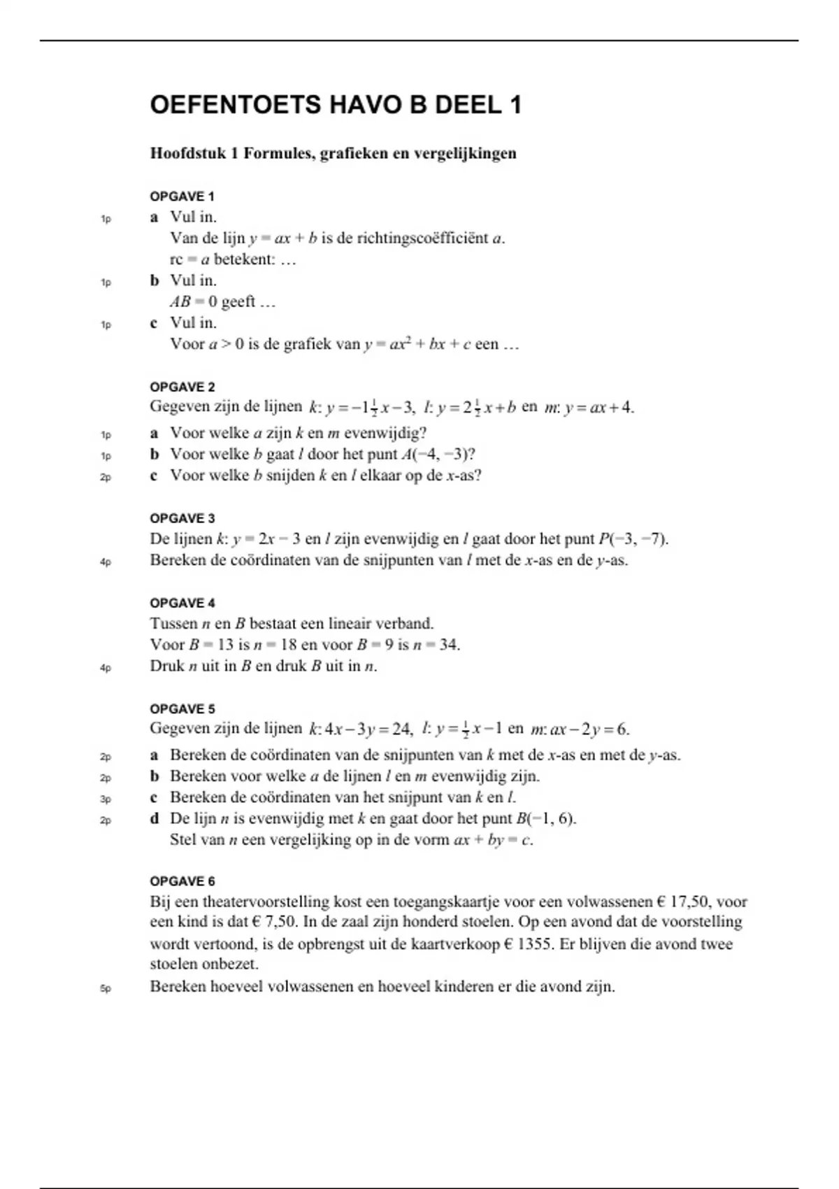 , SCOREVOORSTEL OEFENTOETS HAVO B DEEL 1