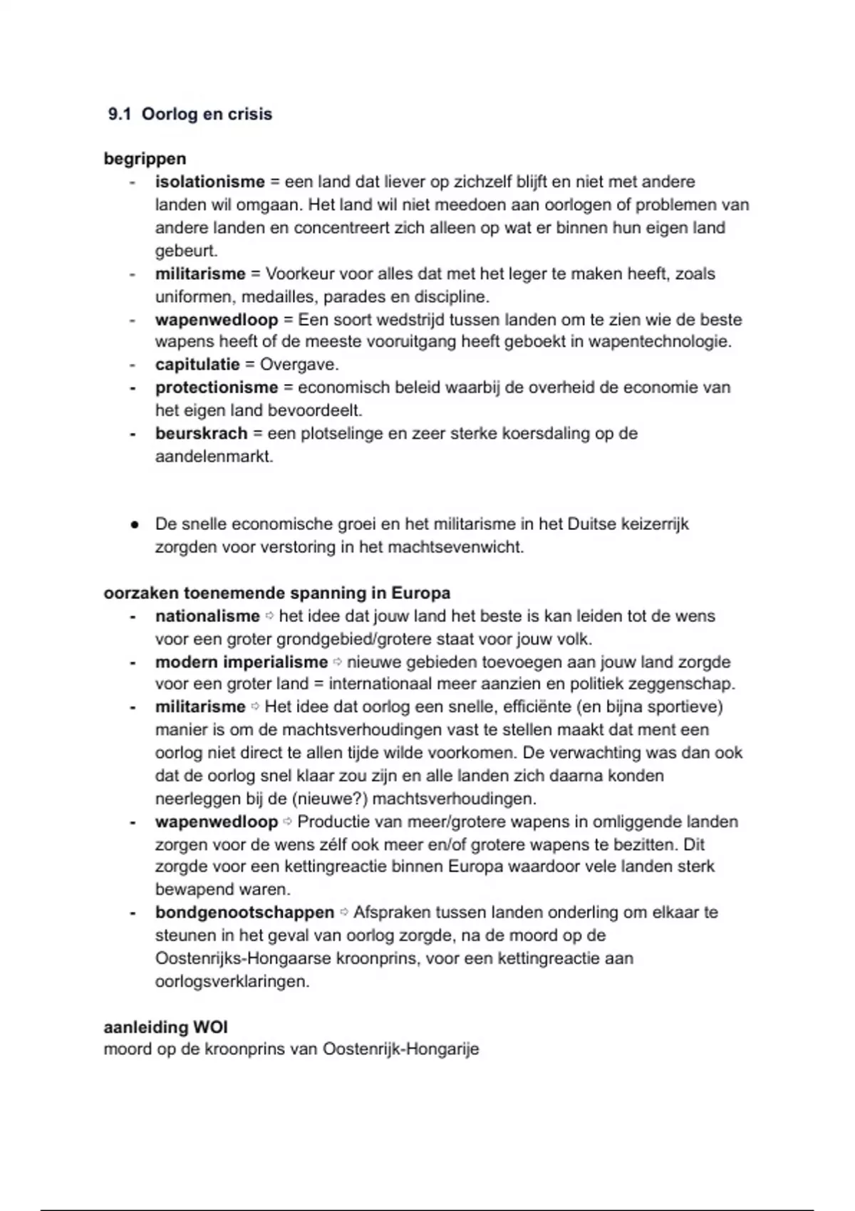 -​ nationalisme ⇨ het idee dat jouw land het beste is kan leiden tot de wens
