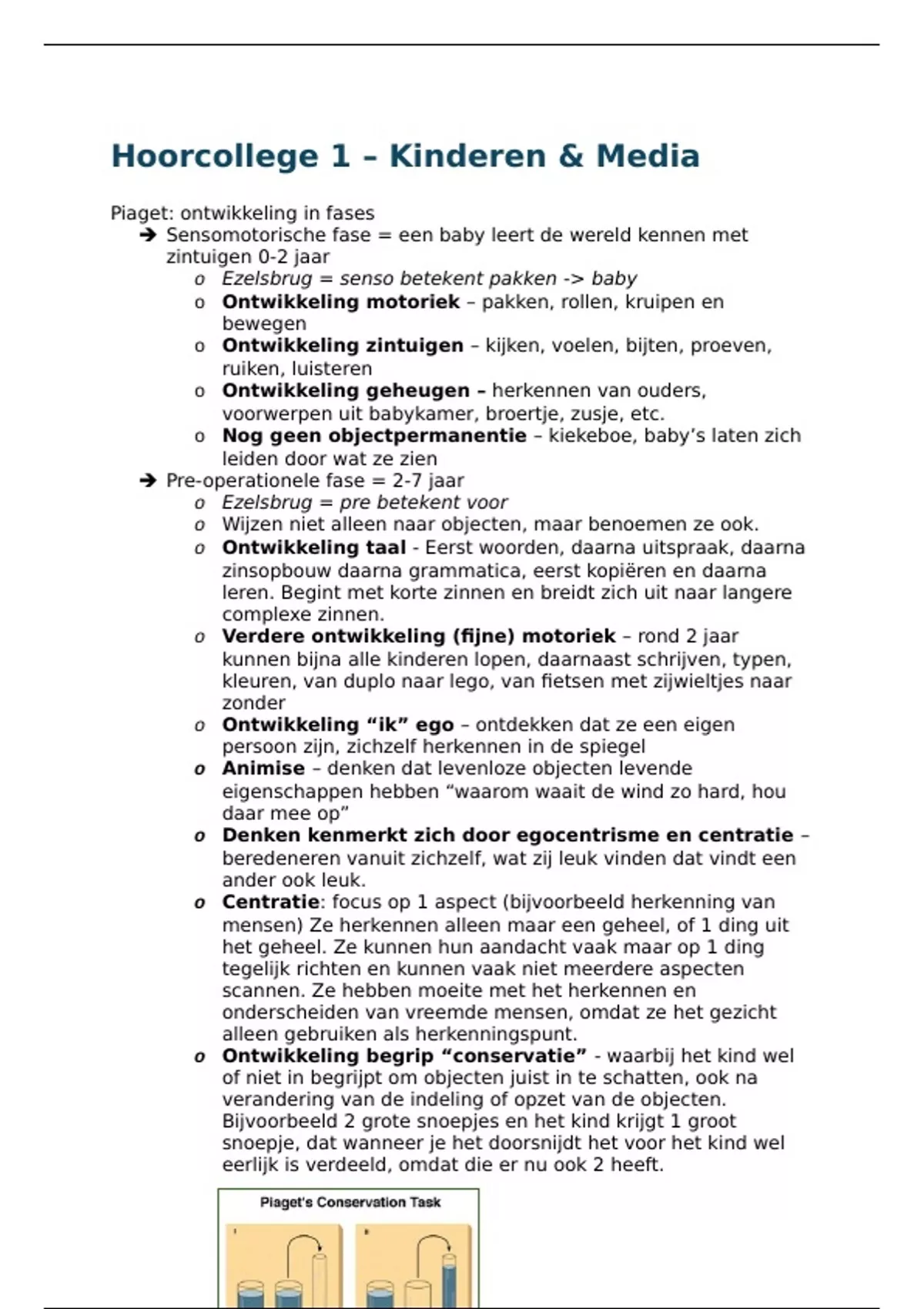 o Ontwikkeling begrip “conservatie” - waarbij het kind wel