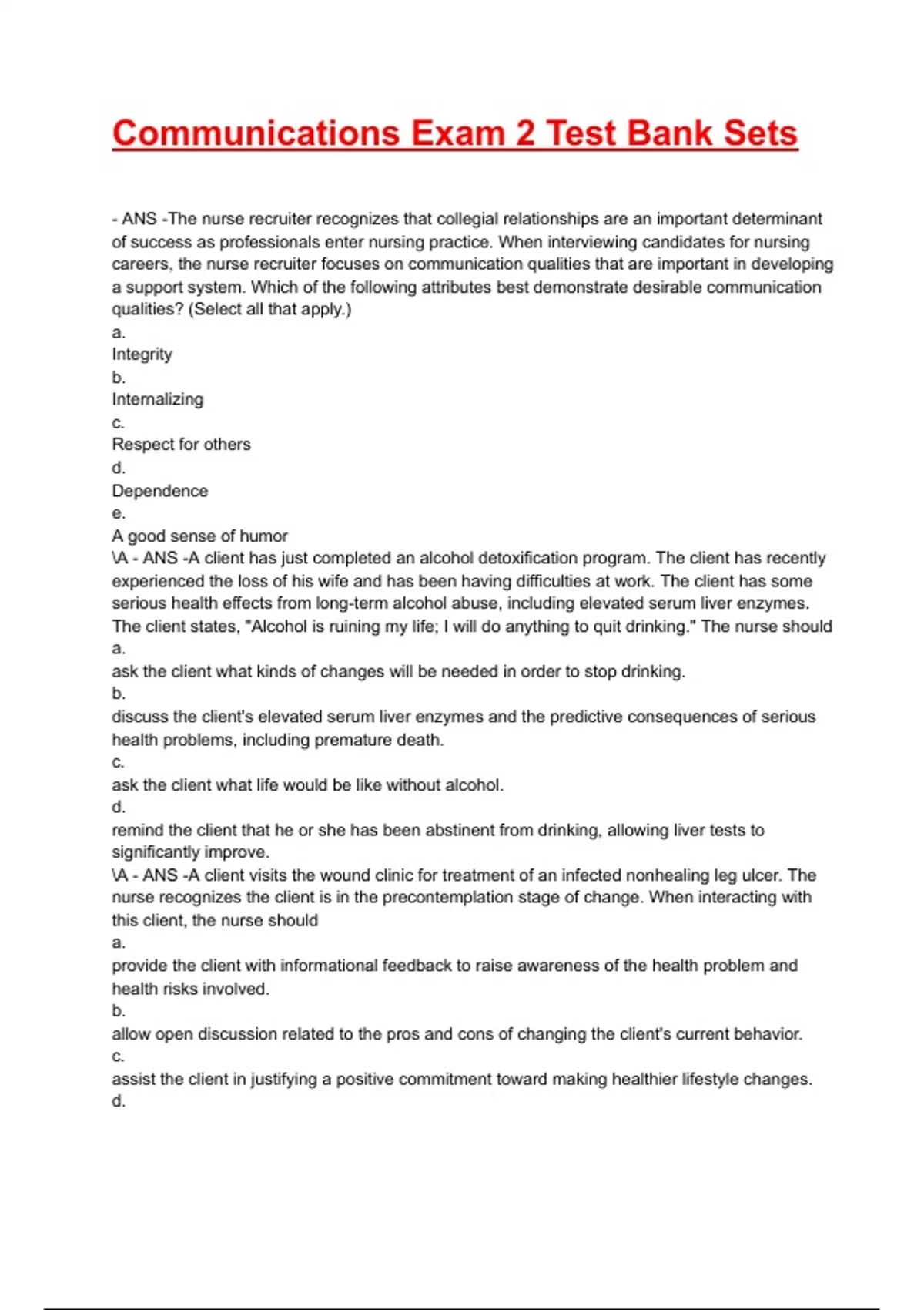 \A - ANS -A client has just completed an alcohol detoxification program. The client has recently