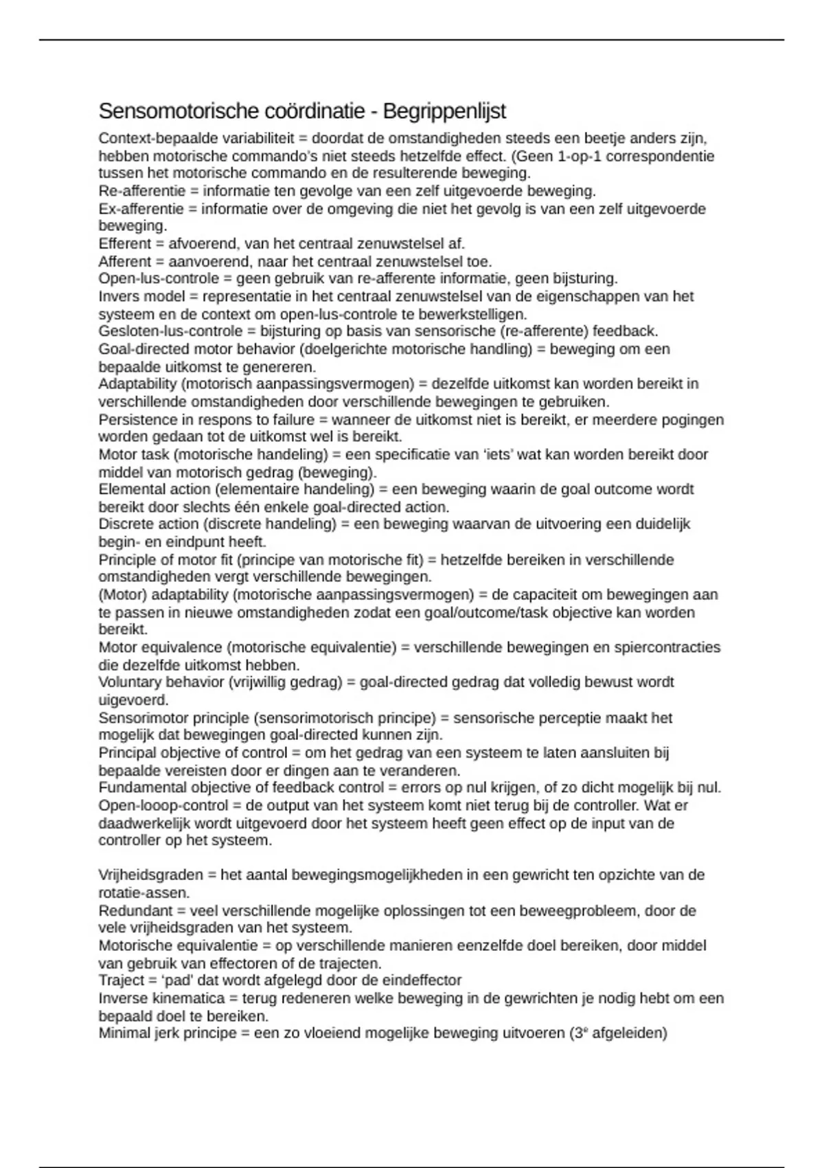 Begrippenlijst - Sensomotorische coördinatie