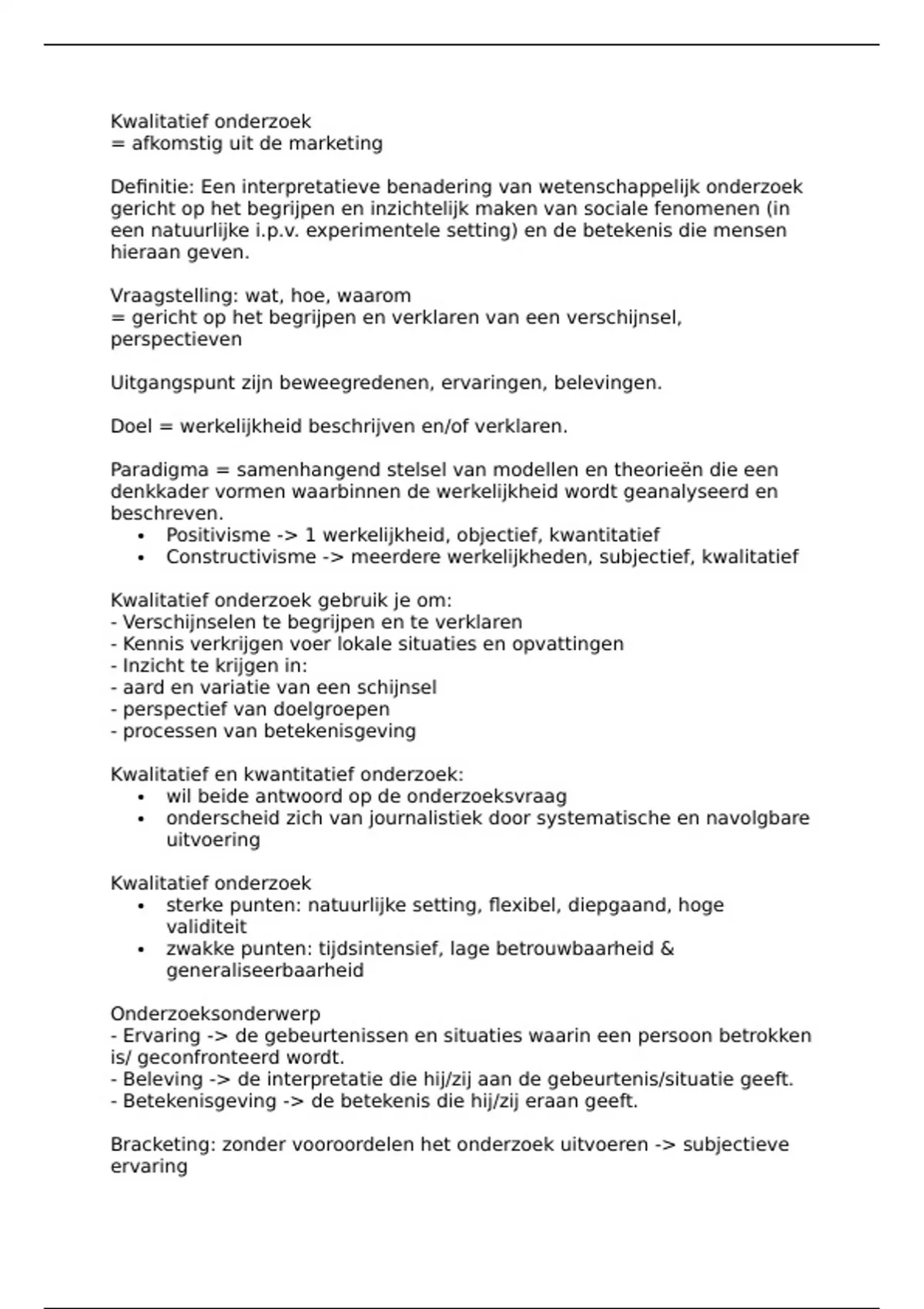 Bracketing: zonder vooroordelen het onderzoek uitvoeren -> subjectieve