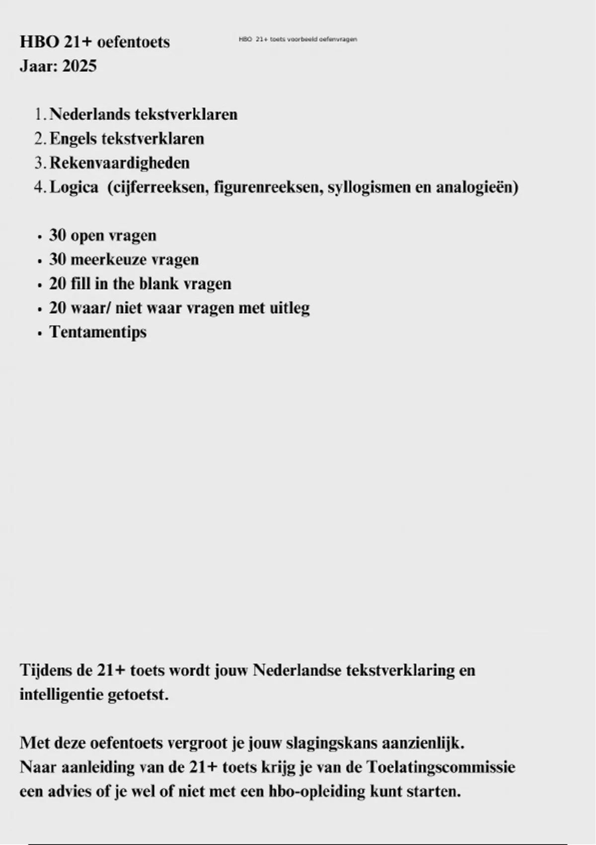 Examenhacks voor de 21+ HBO-toets.......................................20