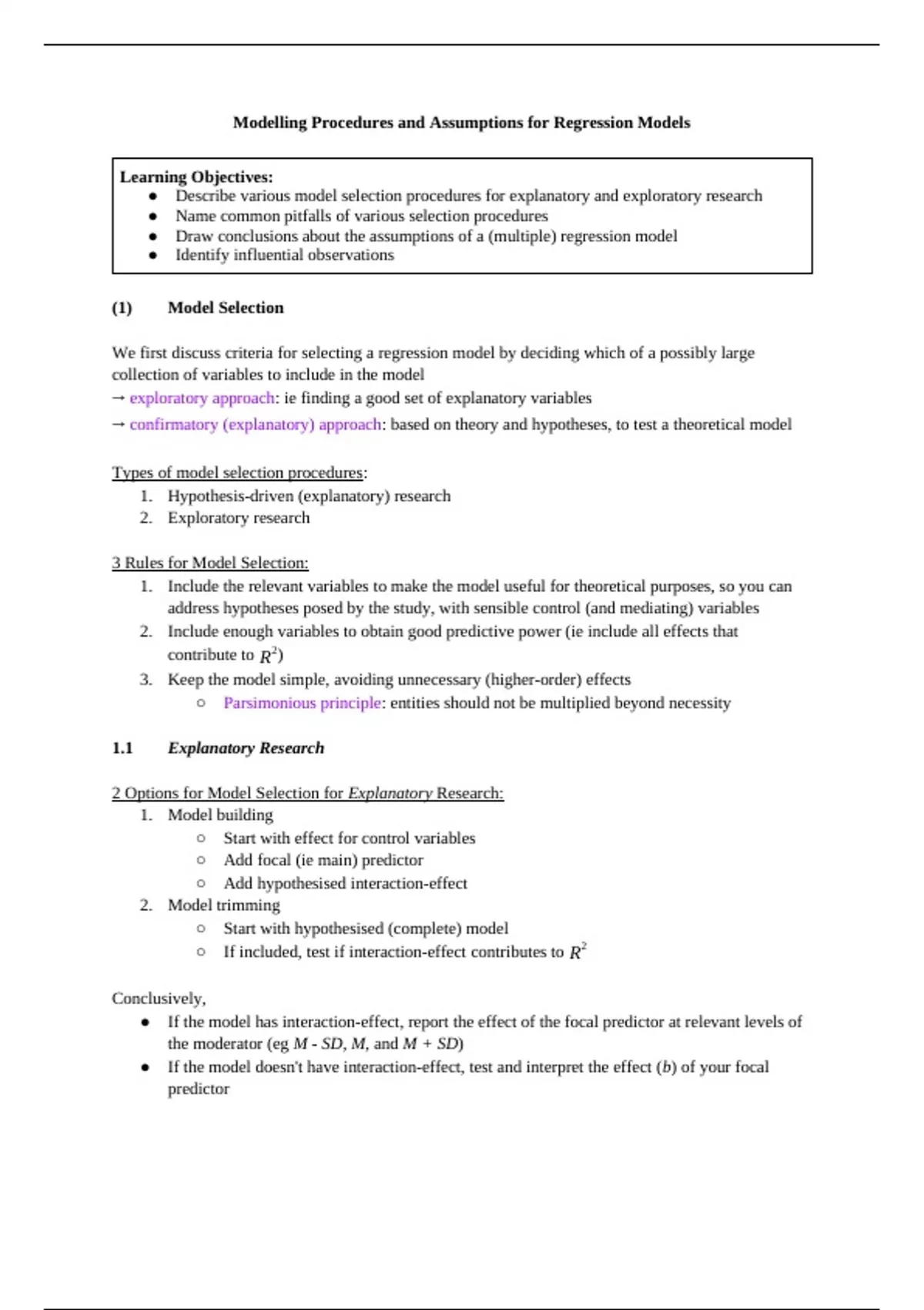 ● Draw conclusions about the assumptions of a (multiple) regression model