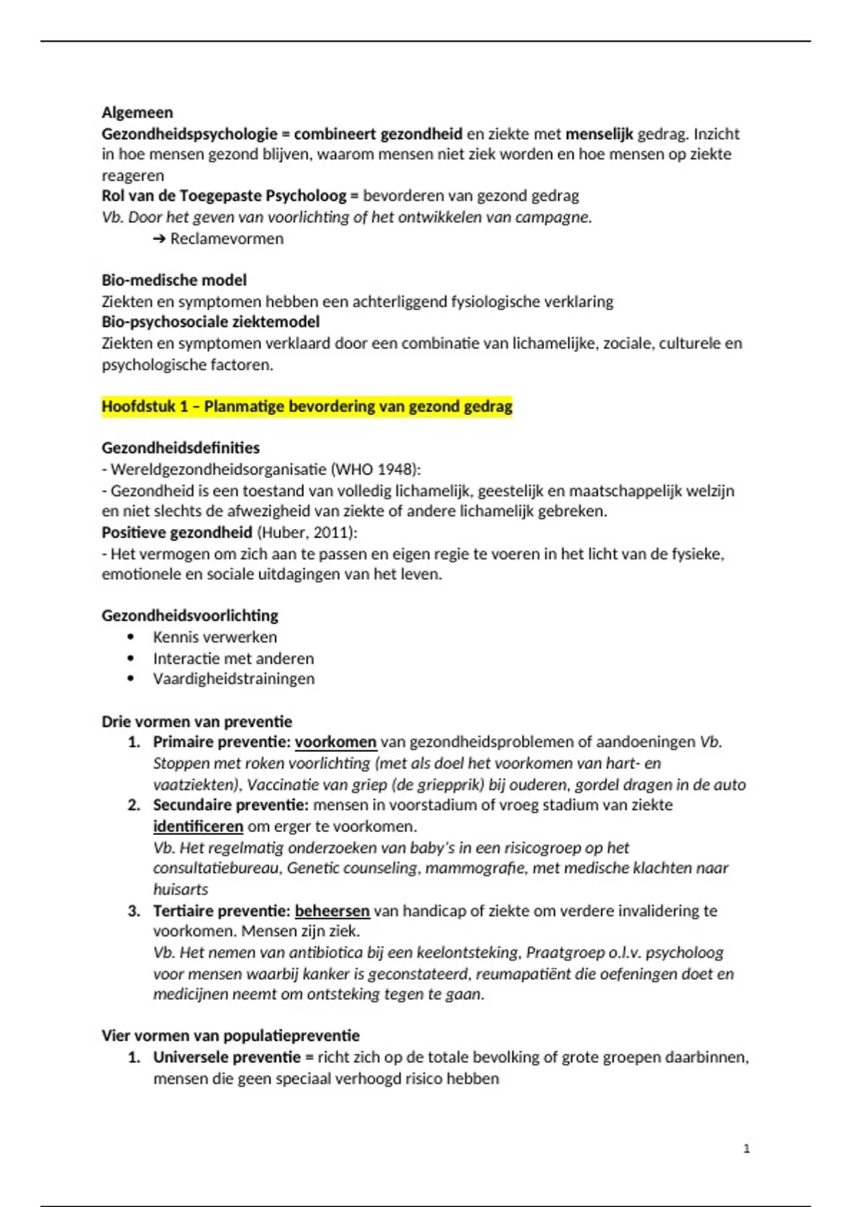 1. Universele preventie = richt zich op de totale bevolking of grote groepen daarbinnen,