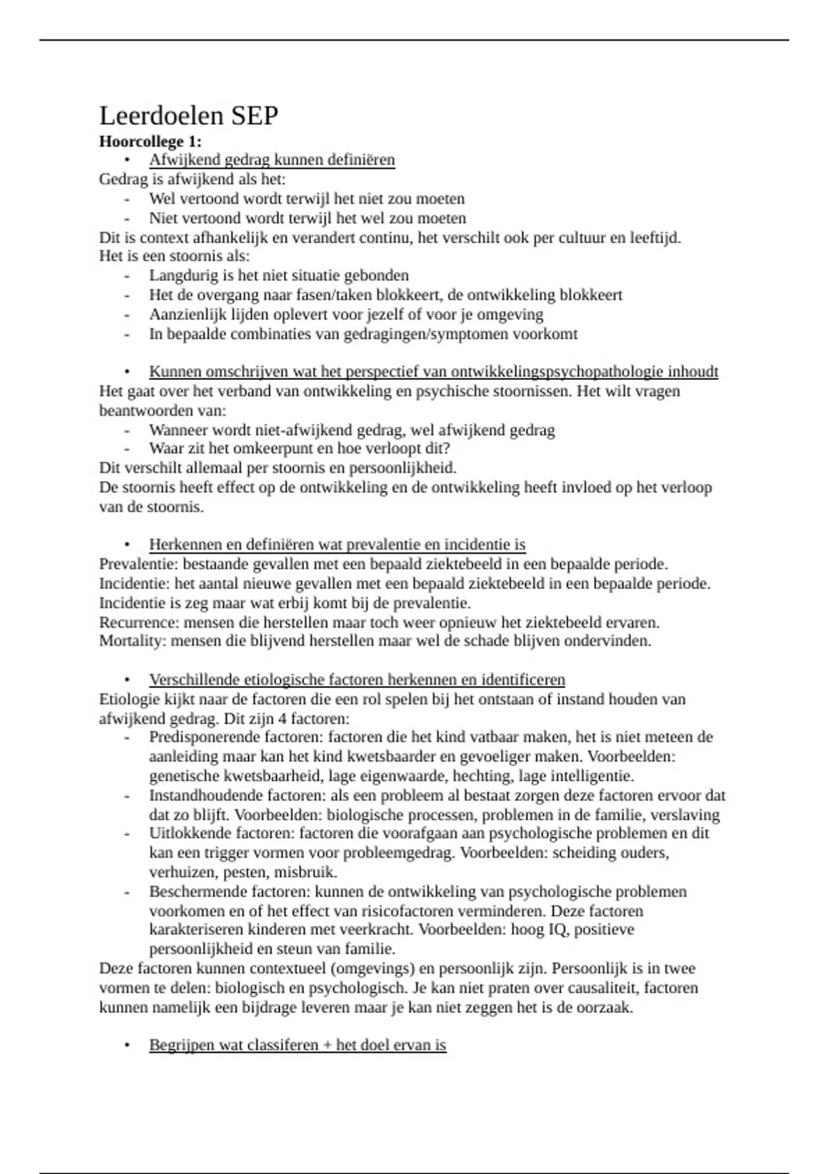 • Kunnen omschrijven wat het perspectief van ontwikkelingspsychopathologie inhoudt
