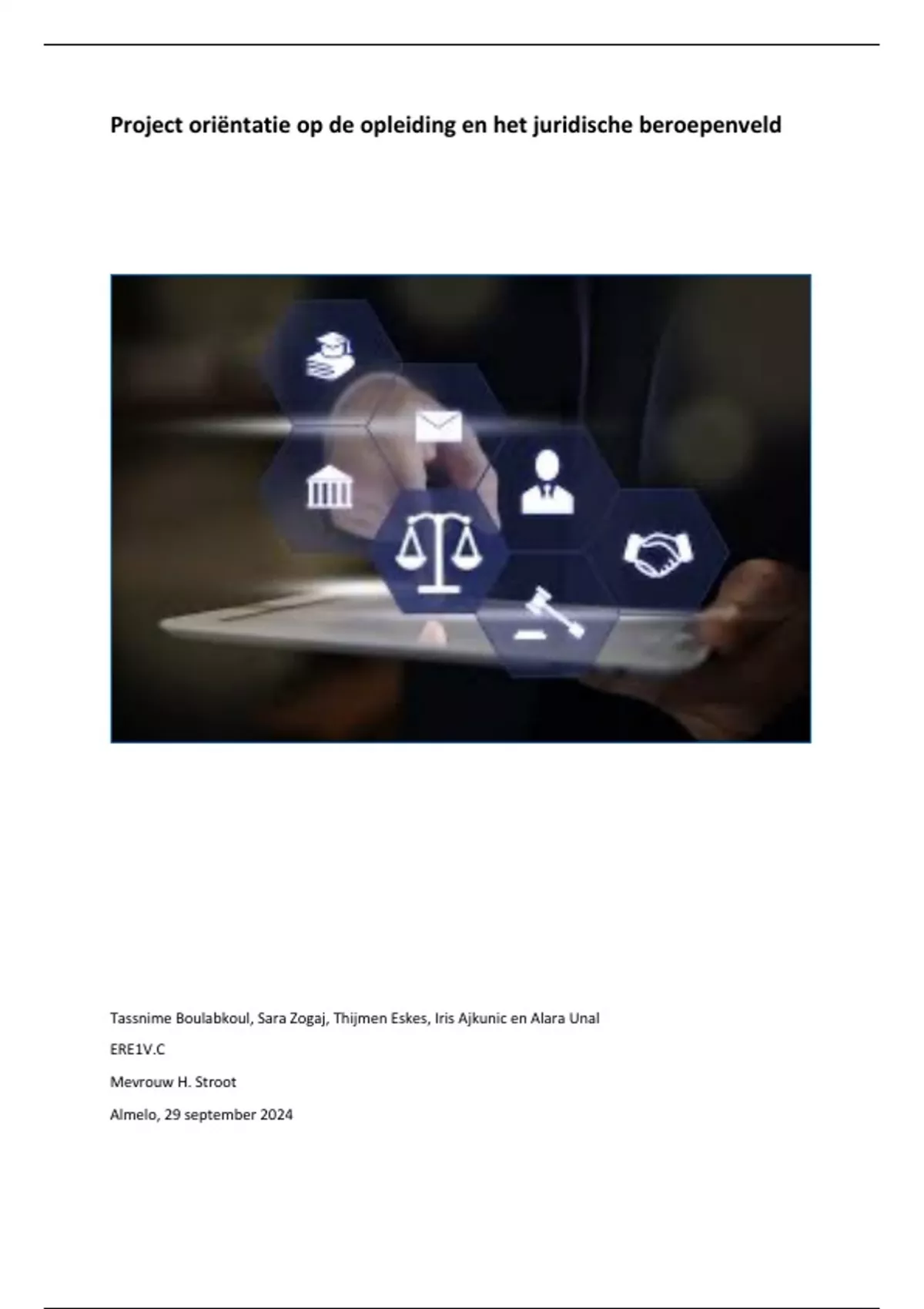 hebben de opdracht gekregen om in dit project: “Oriëntatie op de opleiding en het juridische werkveld” onderzoek te doen