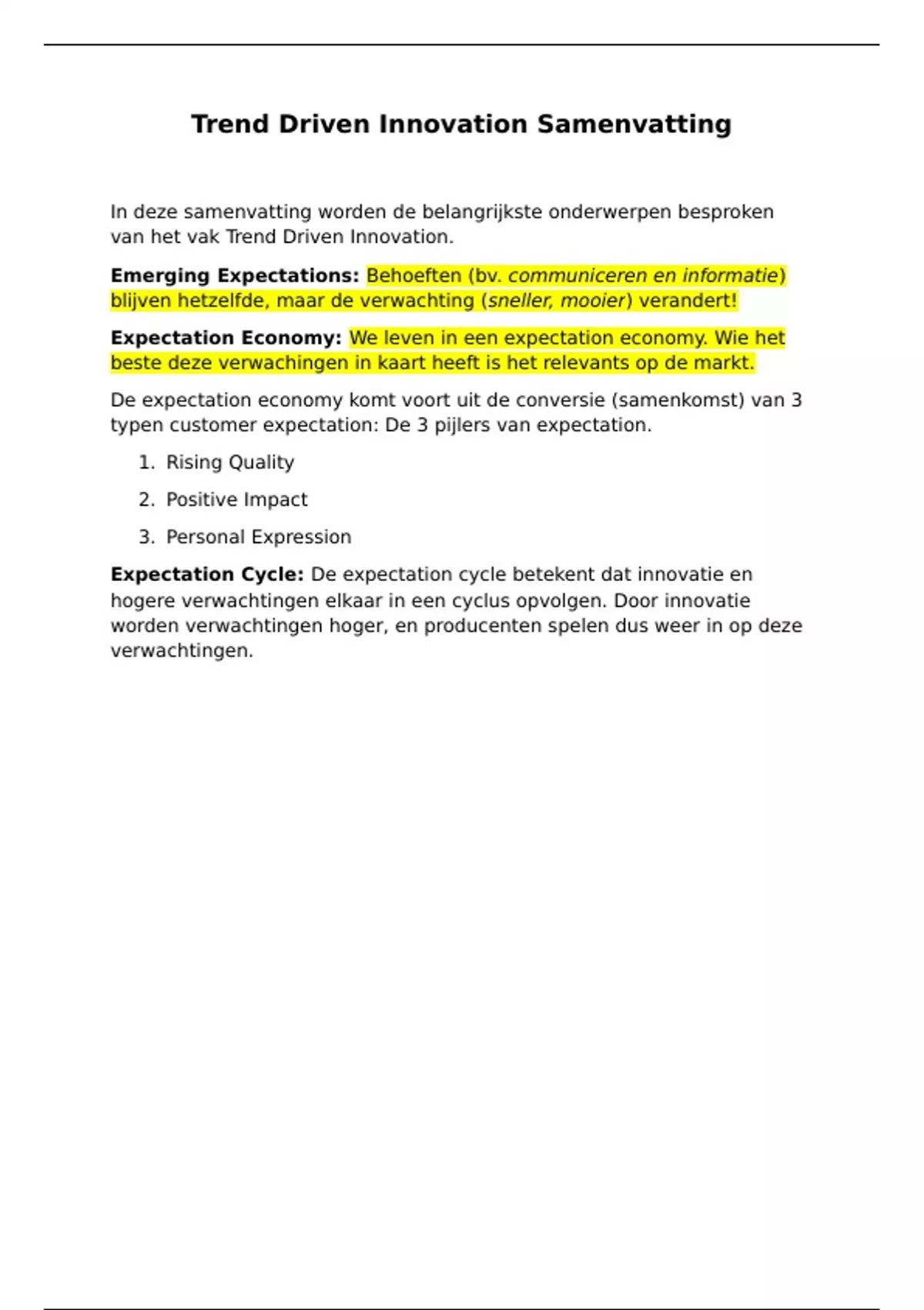 In deze samenvatting worden de belangrijkste onderwerpen besproken van het vak Trend Driven Innovation. Bereid je met deze samenvatting zo goed mogelijk voor op je tentamen!