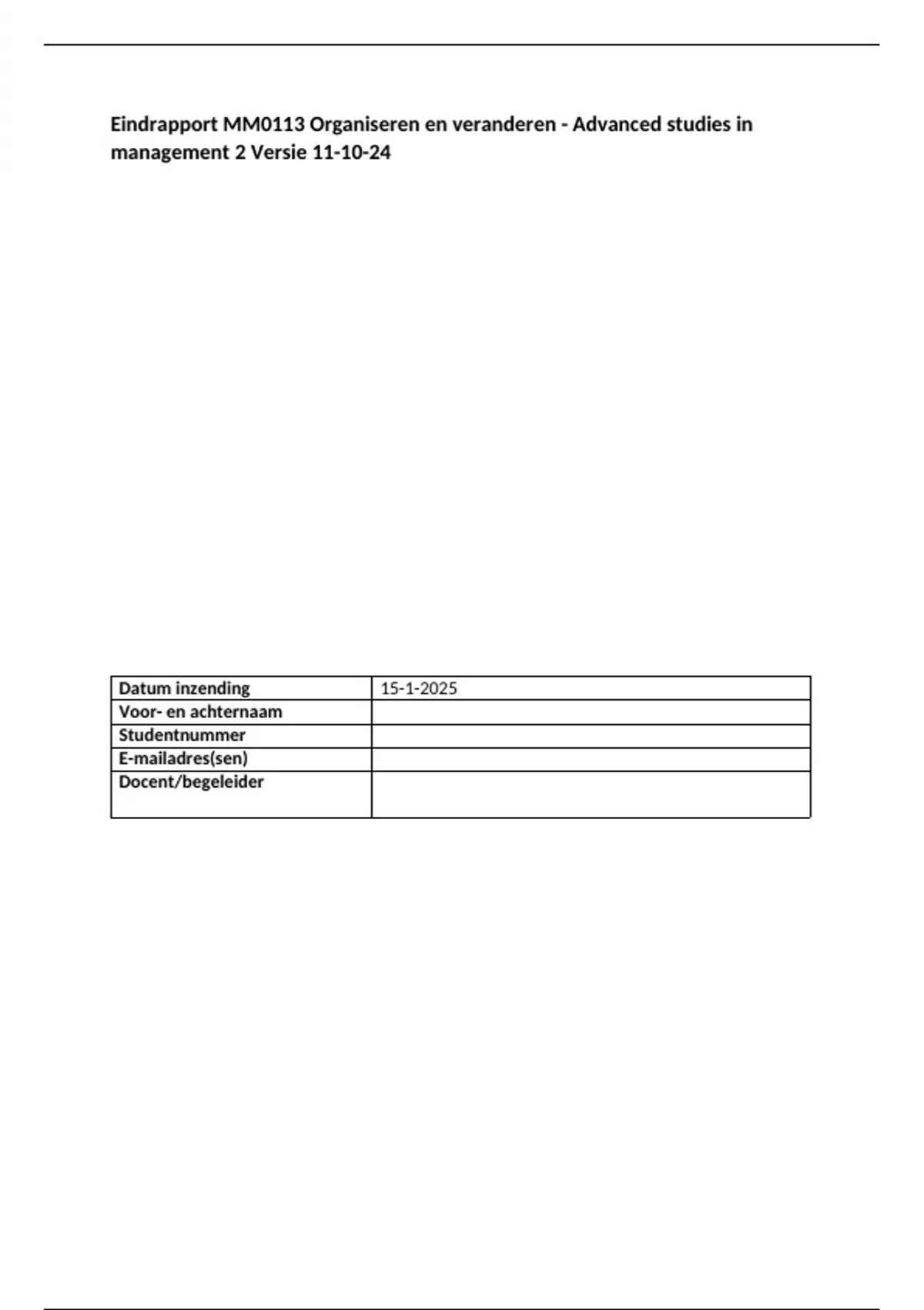 Eindrapport MM0113 Organiseren en veranderen - Advanced studies in