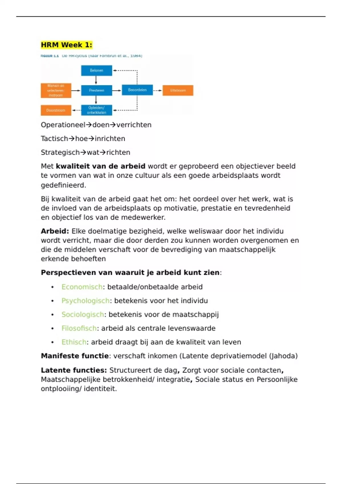 Manifeste functie: verschaft inkomen (Latente deprivatiemodel (Jahoda)