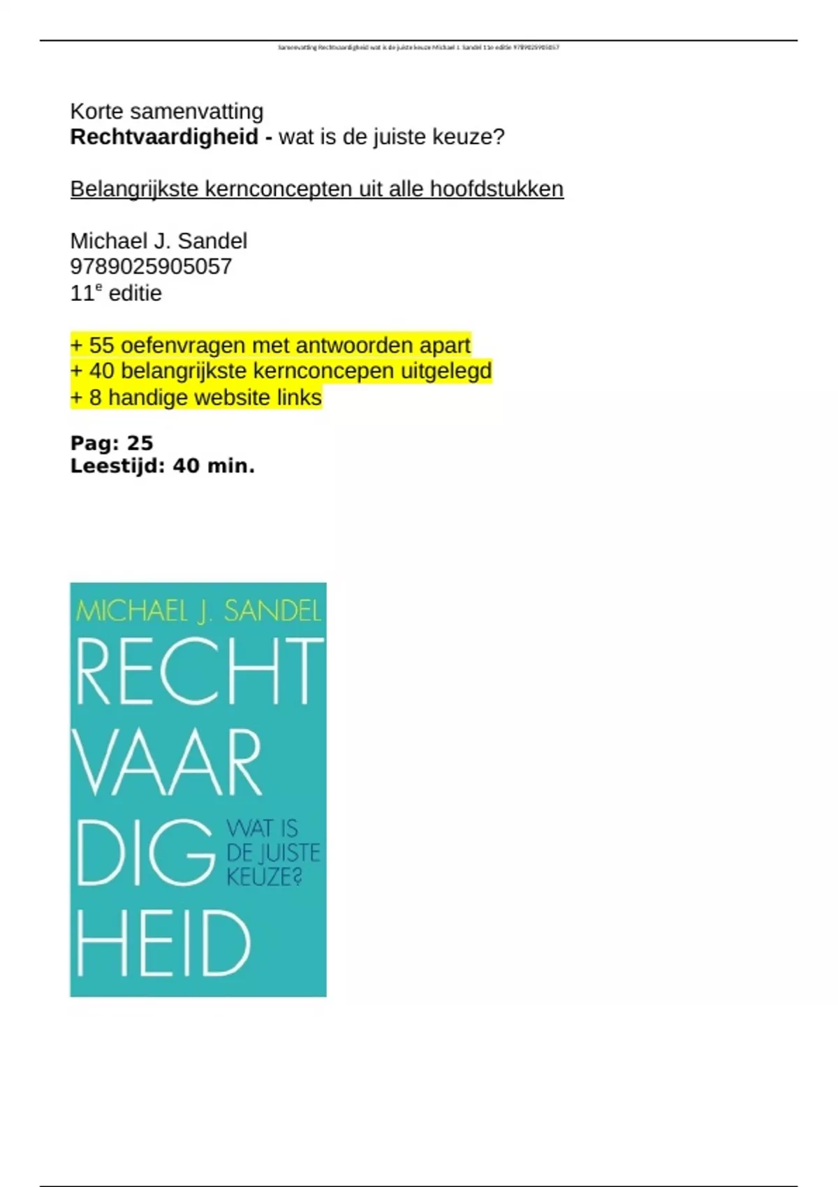 , Samenvatting Rechtvaardigheid wat is de juiste keuze Michael J. Sandel 11e editie 9789025905057