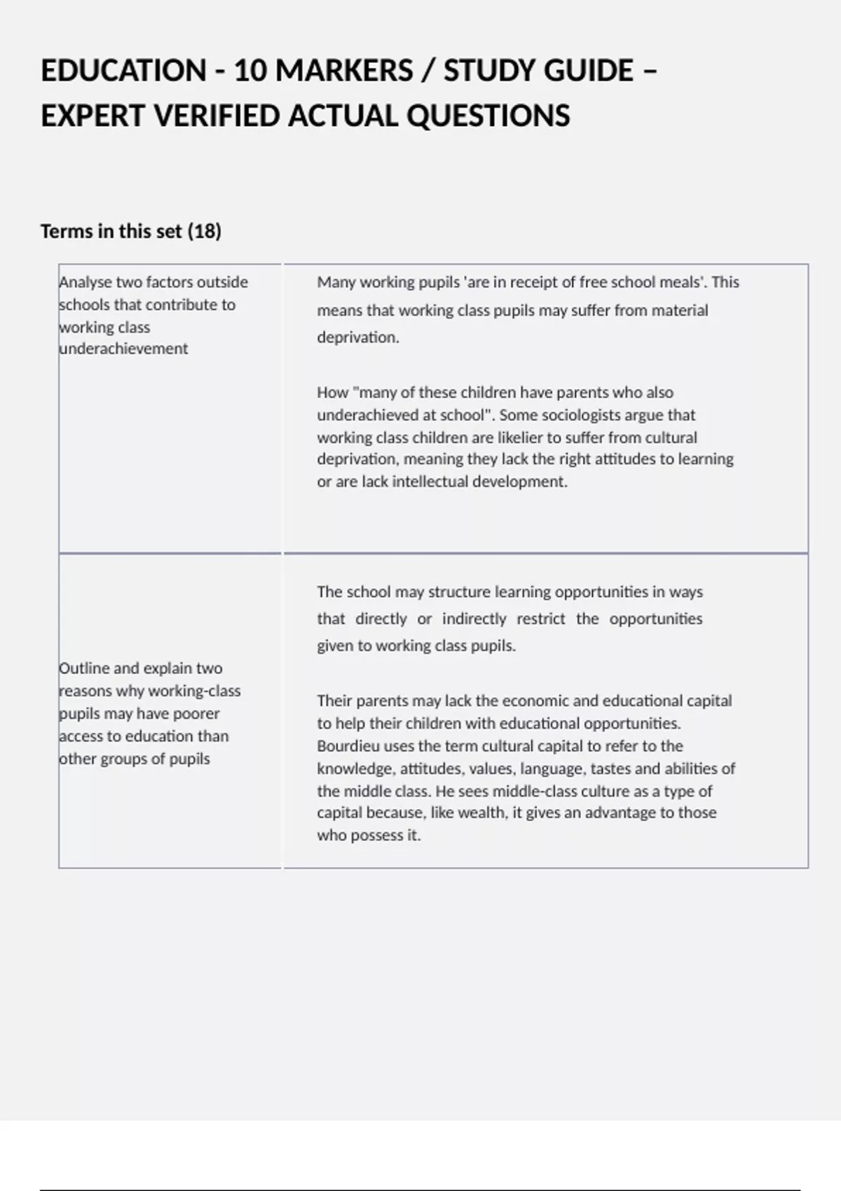 schools that contribute to means that working class pupils may suffer from material