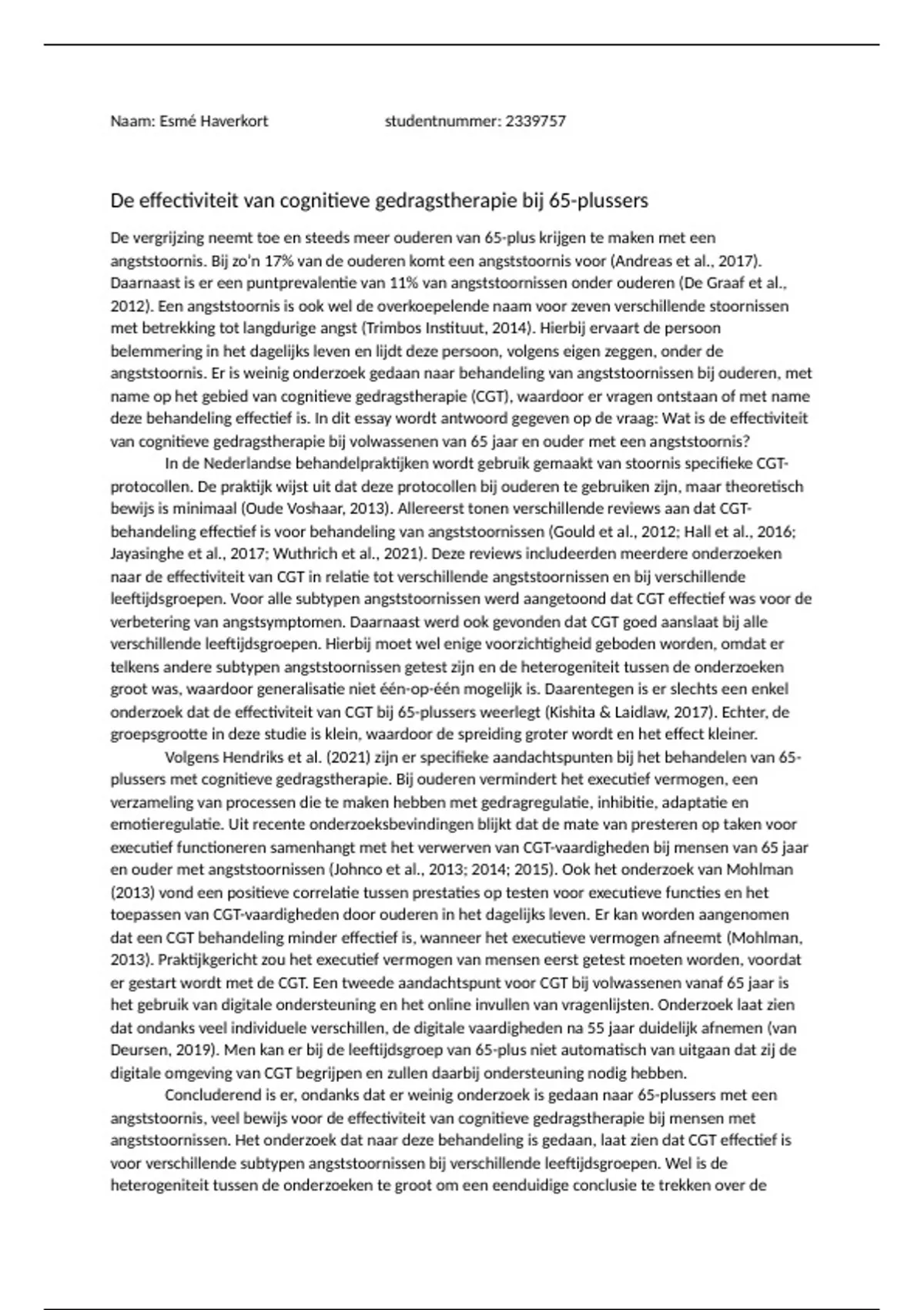 onderzoek dat de effectiviteit van CGT bij 65-plussers weerlegt (Kishita & Laidlaw, 2017). Echter, de