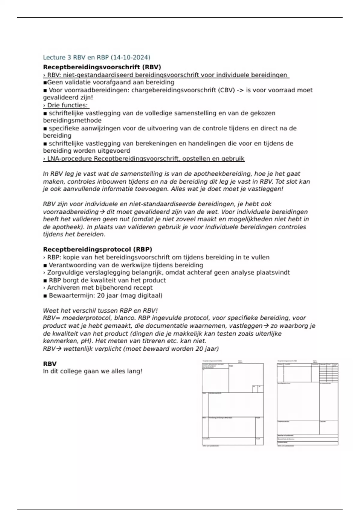 ▪ Voor voorraadbereidingen: chargebereidingsvoorschrift (CBV) -> is voor voorraad moet