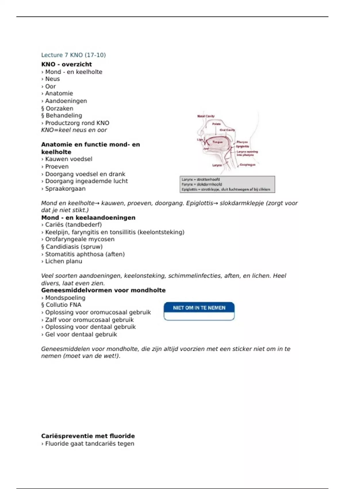 Mond en keelholte→ kauwen, proeven, doorgang. Epiglottis→ slokdarmklepje (zorgt voor