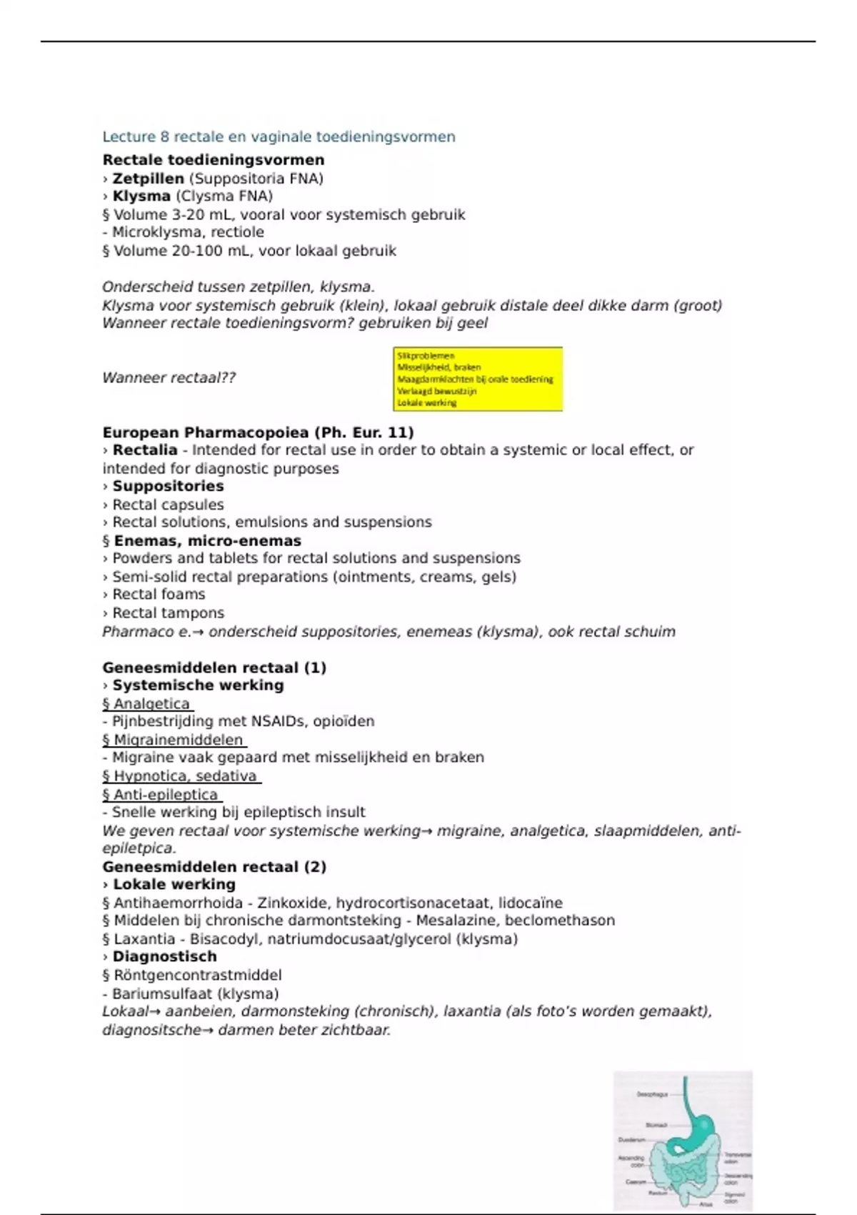 hulpstoffen). Je kunt first-pass effect omzijlen. Klysma werkt sneller dan zetpil omdat