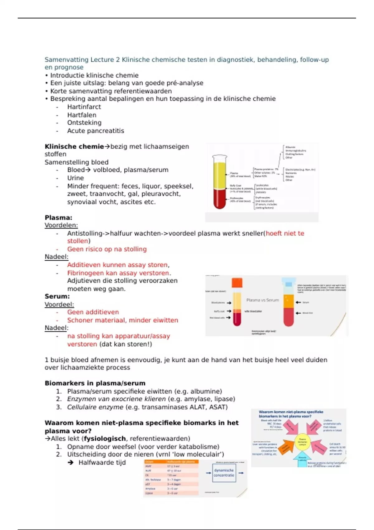 Samenvatting Lecture 2 Klinische chemische testen in diagnostiek, behandeling, follow-up