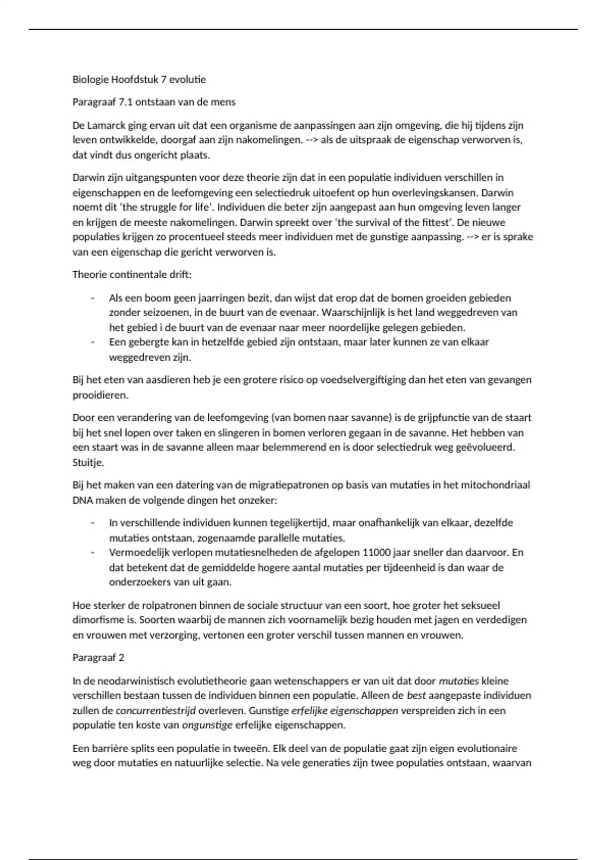 Biologie Hoofdstuk 7 evolutie