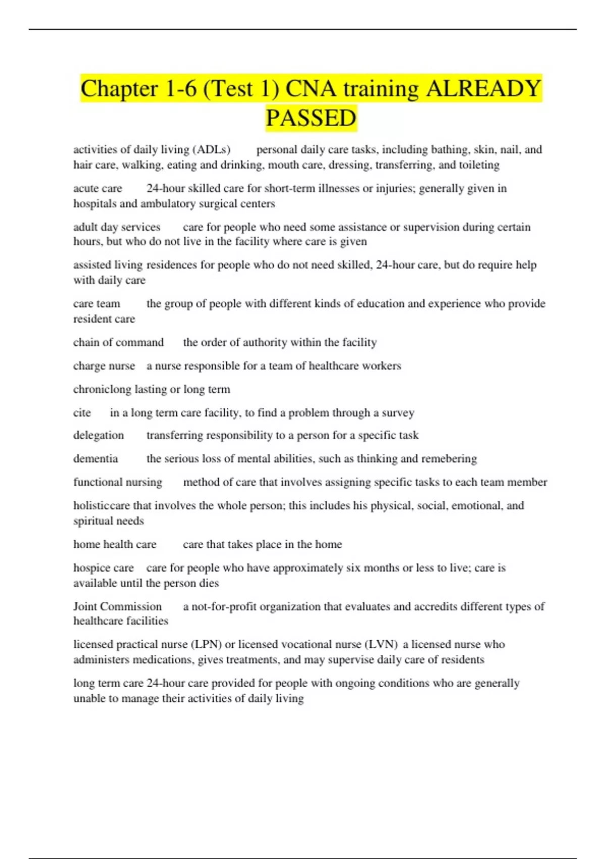 Chapter 1-6 (Test 1) CNA training ALREADY