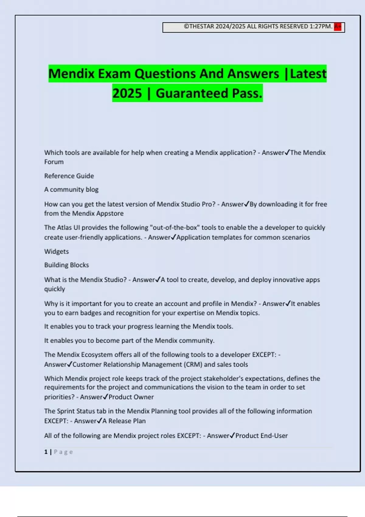 Mendix Exam Questions And Answers |Latest