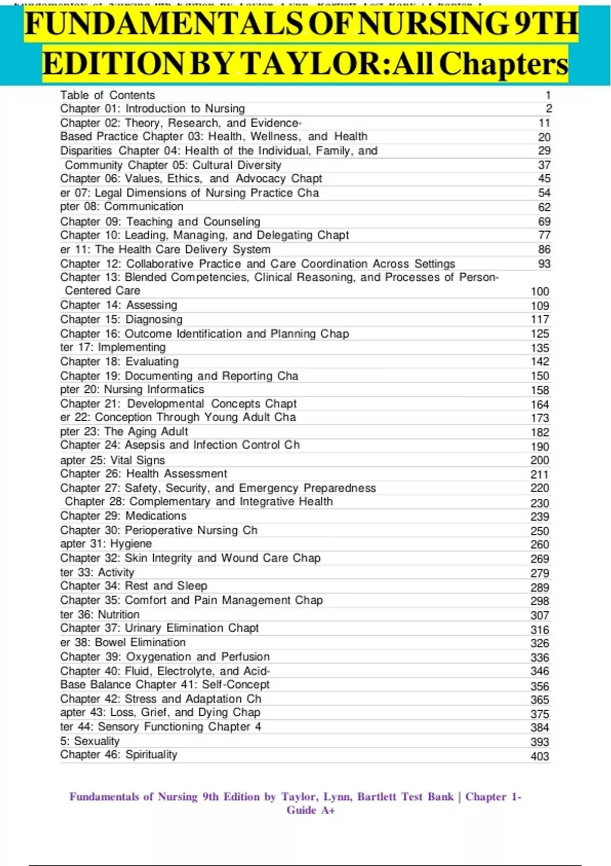 , Fundamentalsmof mNursingm9thmEditionmbymTaylor,mLynn,mBartlettmTestmBankm|mChapterm1-