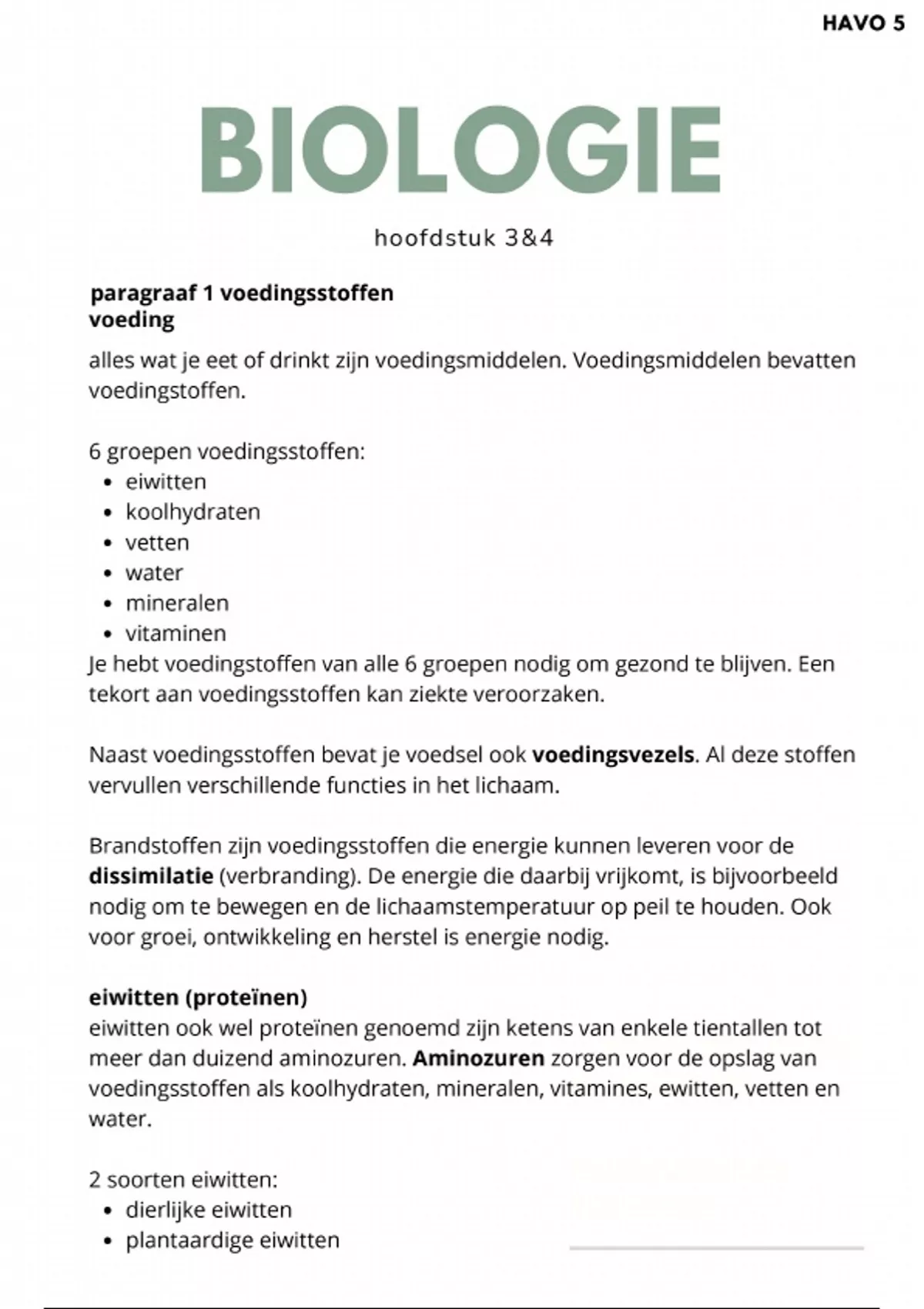 Biologie Samenvatting: Hoofdstuk 3 & 4 (HAVO)