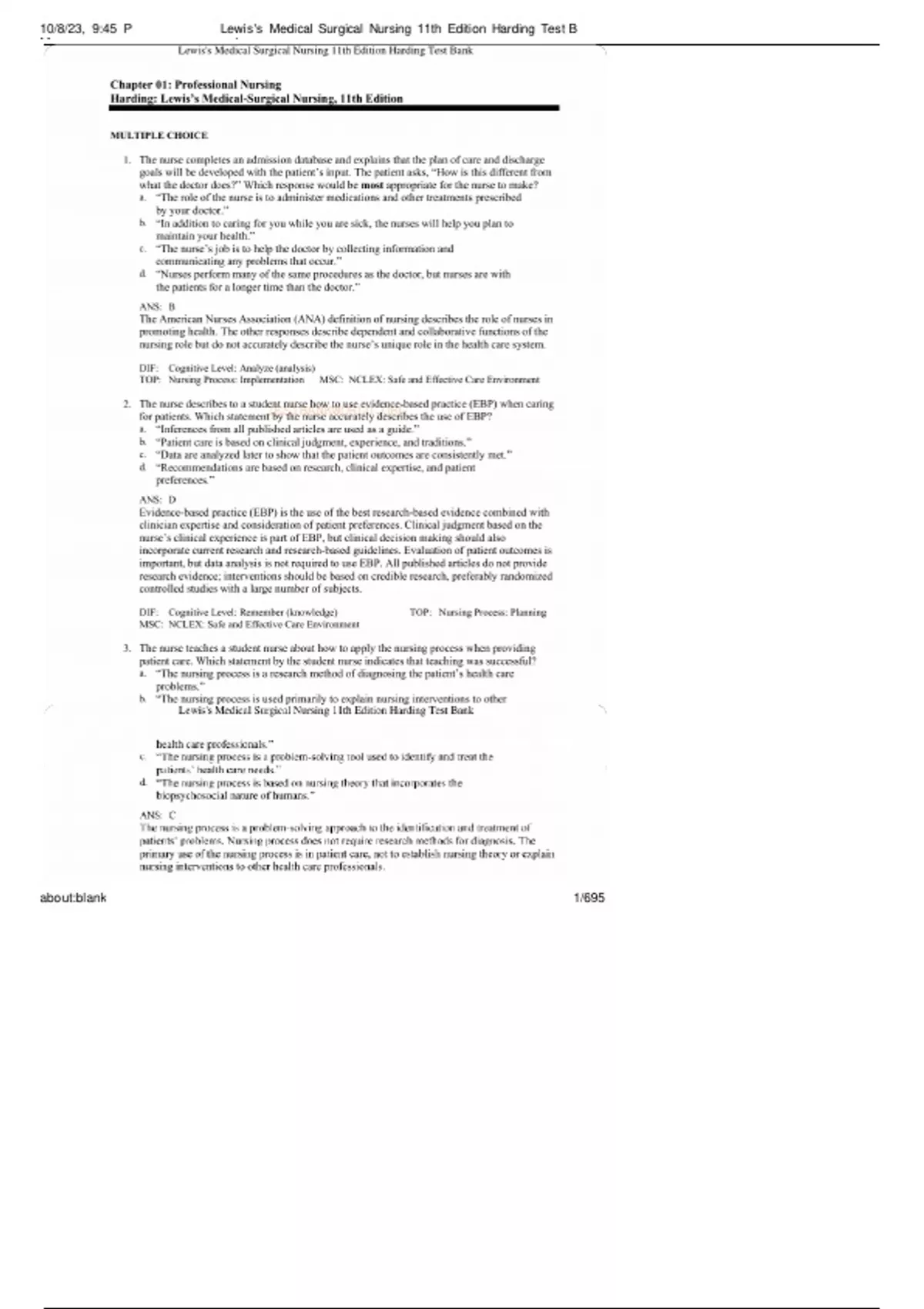 ,10/8/23,m9:45mP Lewis's mMedicalmSurgical mNursingm11thmEditionmHardingmTestmB