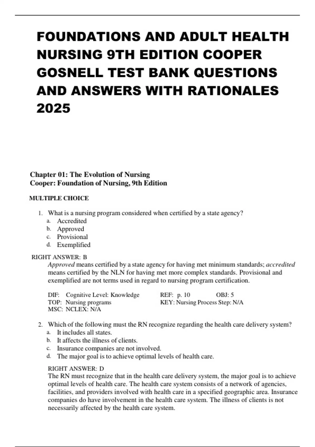 AND ANSWERS WITH RATIONALES