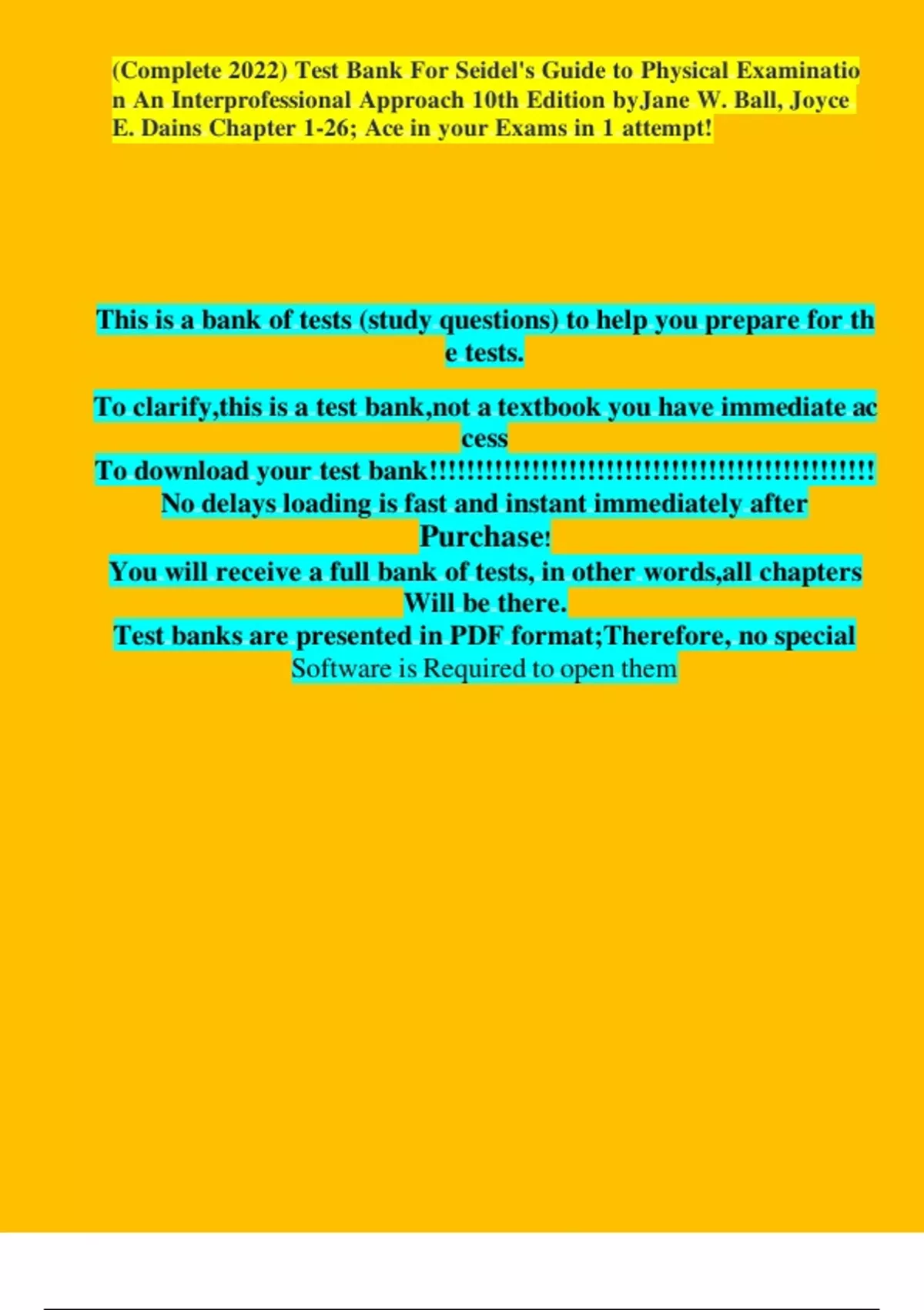 , (Complete 2022) Test Bank For Seidel's Guide to Physical Examinatio
