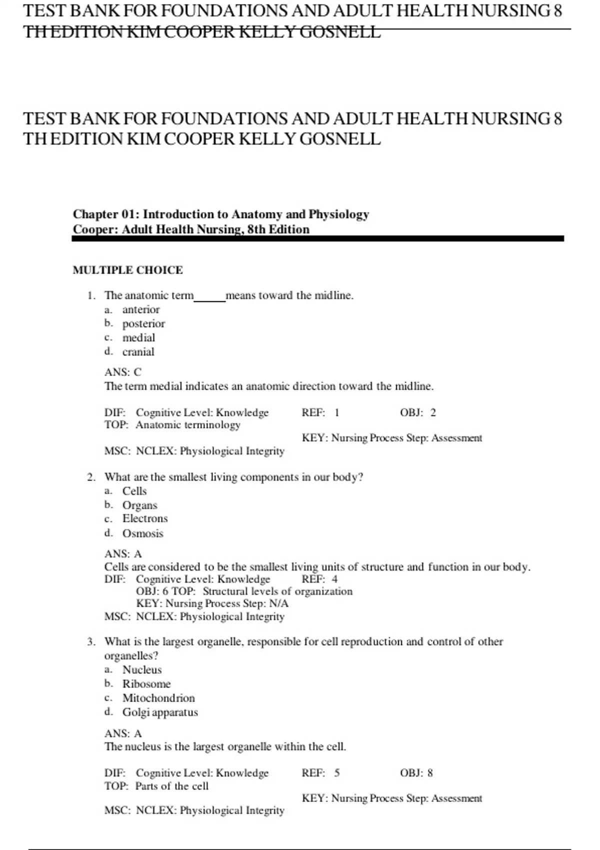 Test Bank Foundations and Adult Health Nursing 8th Edition by Kim Cooper 9780323484374 All Chapters with Answers and R