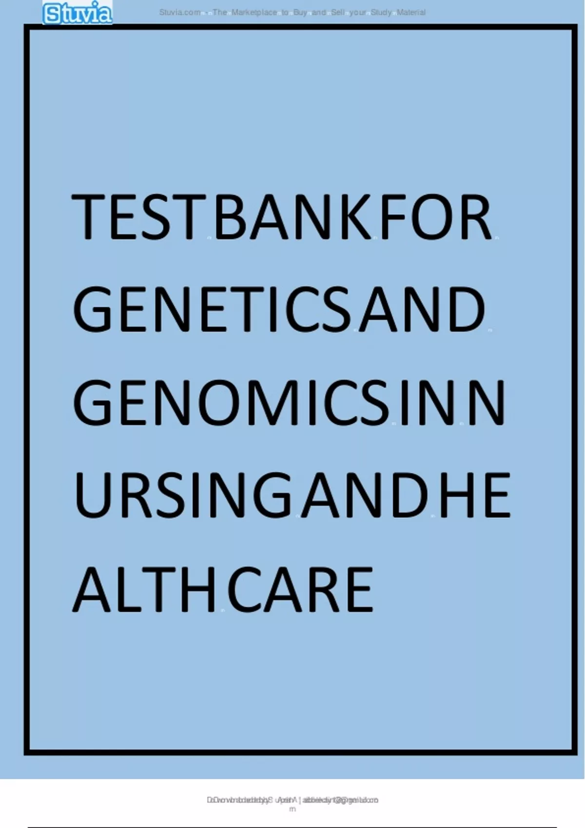 Test Bank Genetics and Genomics in Nursing and Health Care 2nd Edition by Beery - Ch. 1-20, 9780803660830, with Rationales,Test Bank Genetics and Genomics in Nursing and Health Care 2nd Edition by Beery - Ch. 1-20, 9780803660830, with Rationales.pdf
